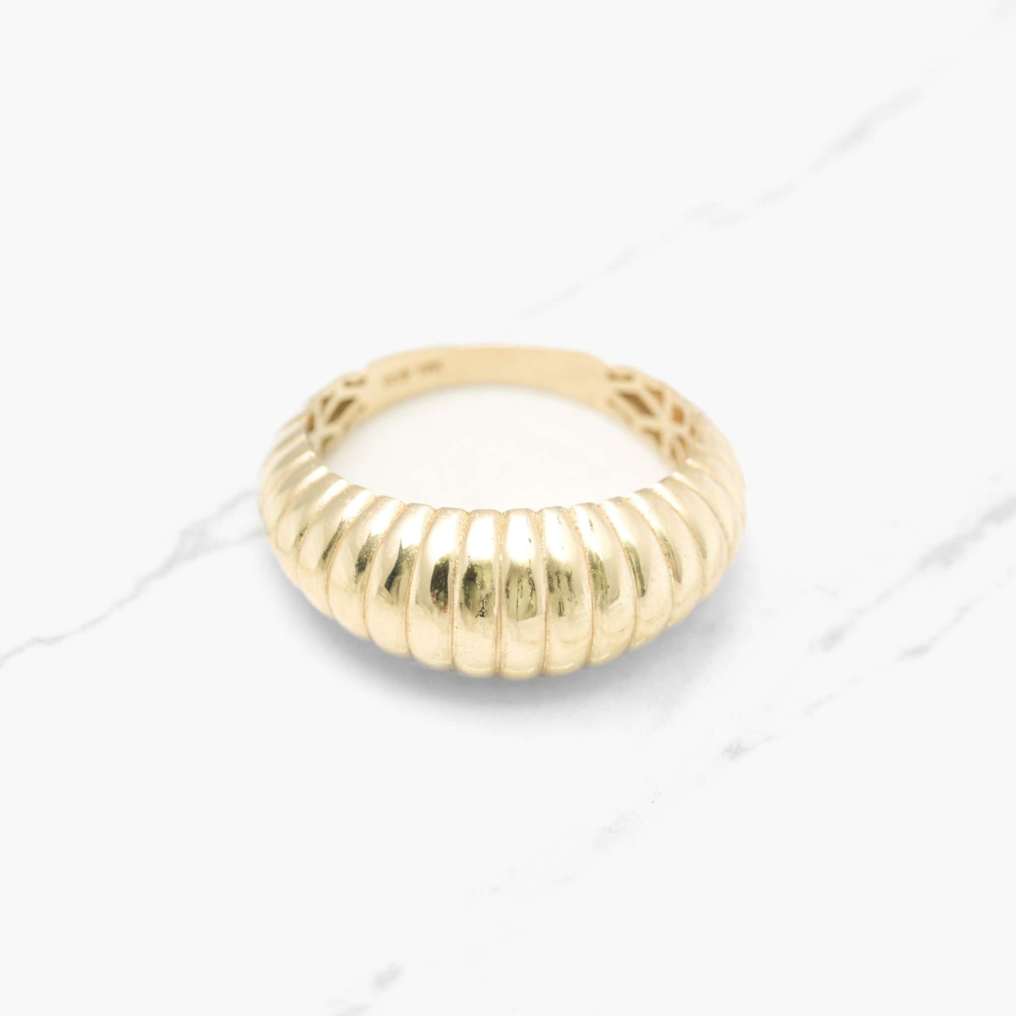 Cette bague en or 10K jaune avec un motif croissant poli est un ajout élégant et unique à votre collection de bijoux.