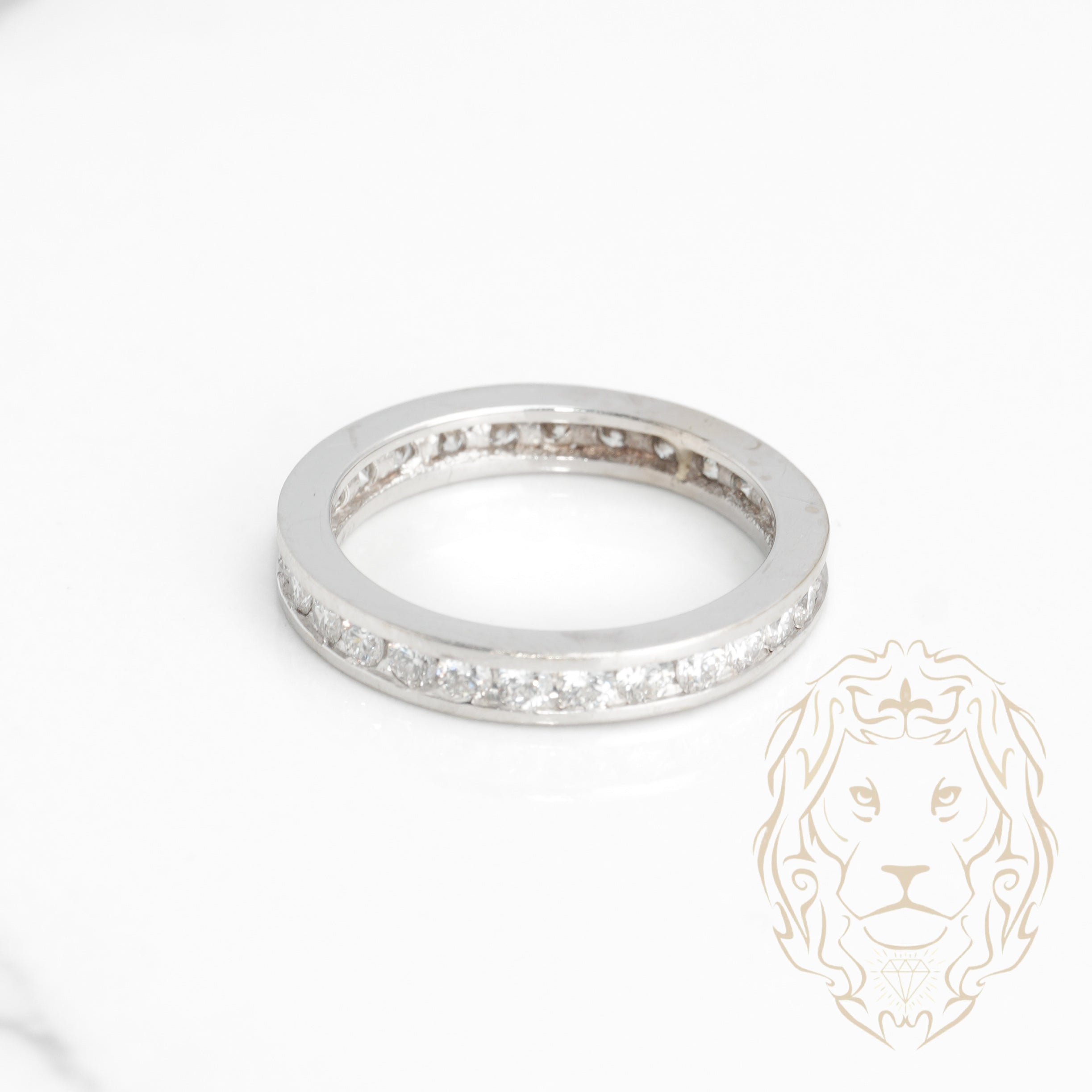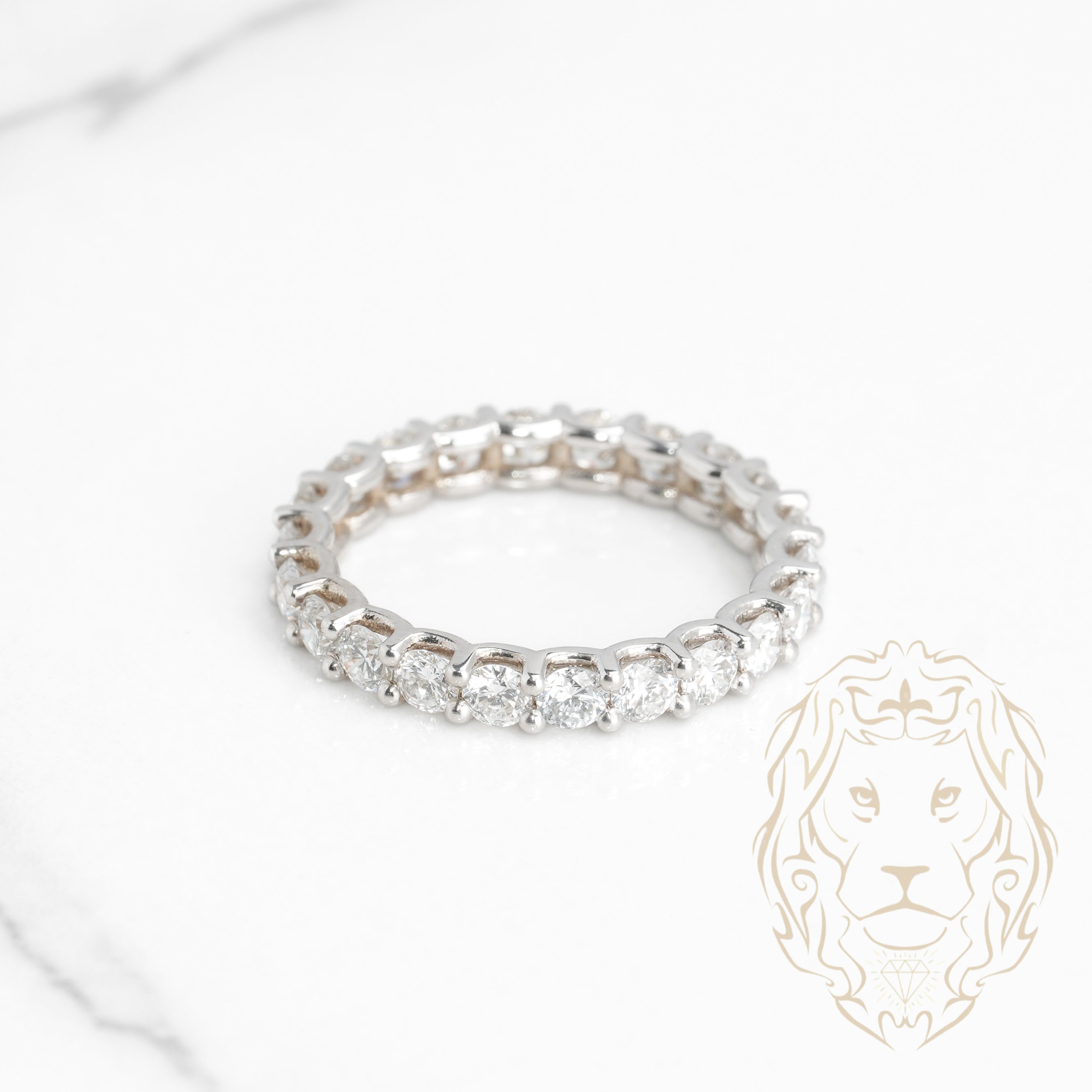 Avec des diamants taille rond brillant placés tout autour de l’anneau, cette bague est le summum du luxe et de l’élégance. Son design scintillant symbolise un amour sans fin et une promesse éternelle.