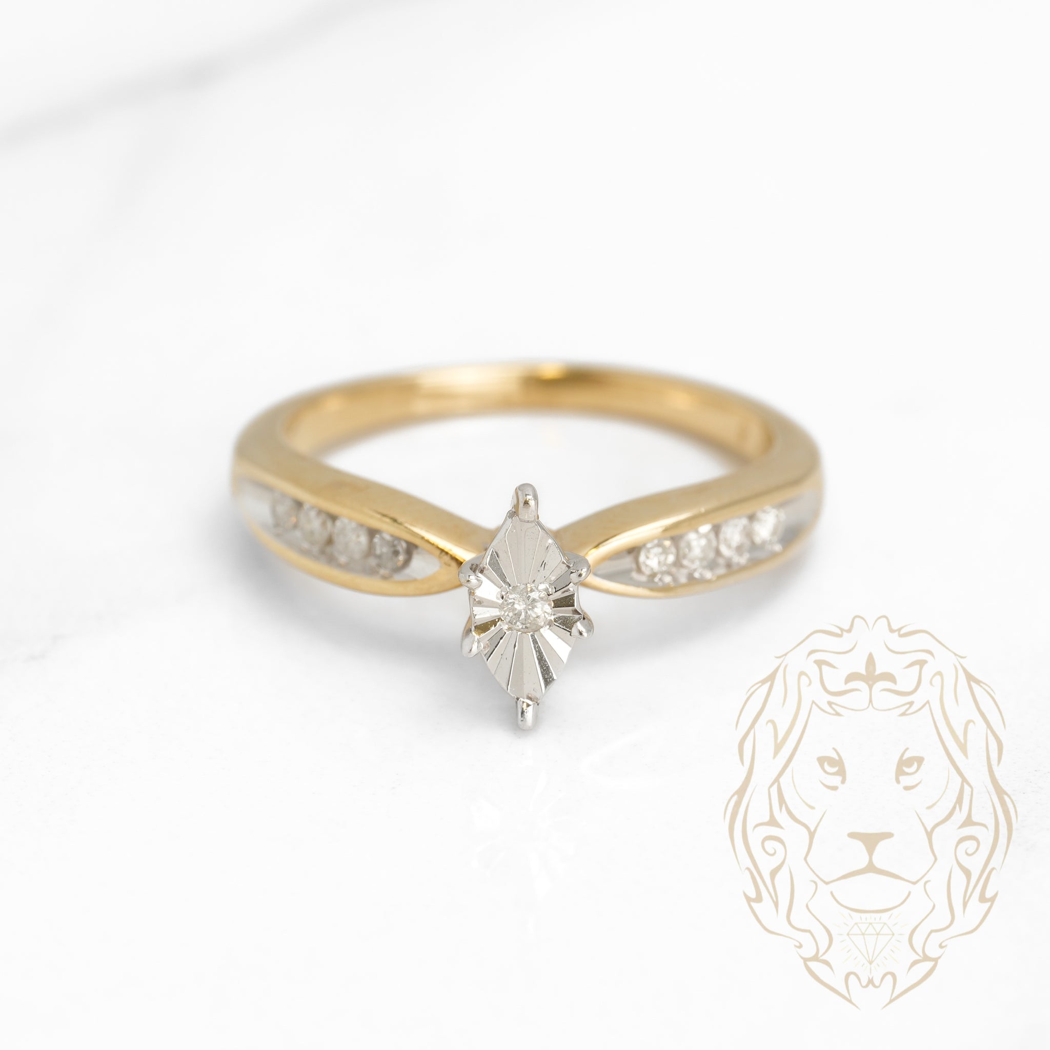 Bague de fiançailles - Or 14K deux tons jaune & blanc marquise iillusion sertie de diamants naturels coupe rond brillant 0.10CT - RIGD313