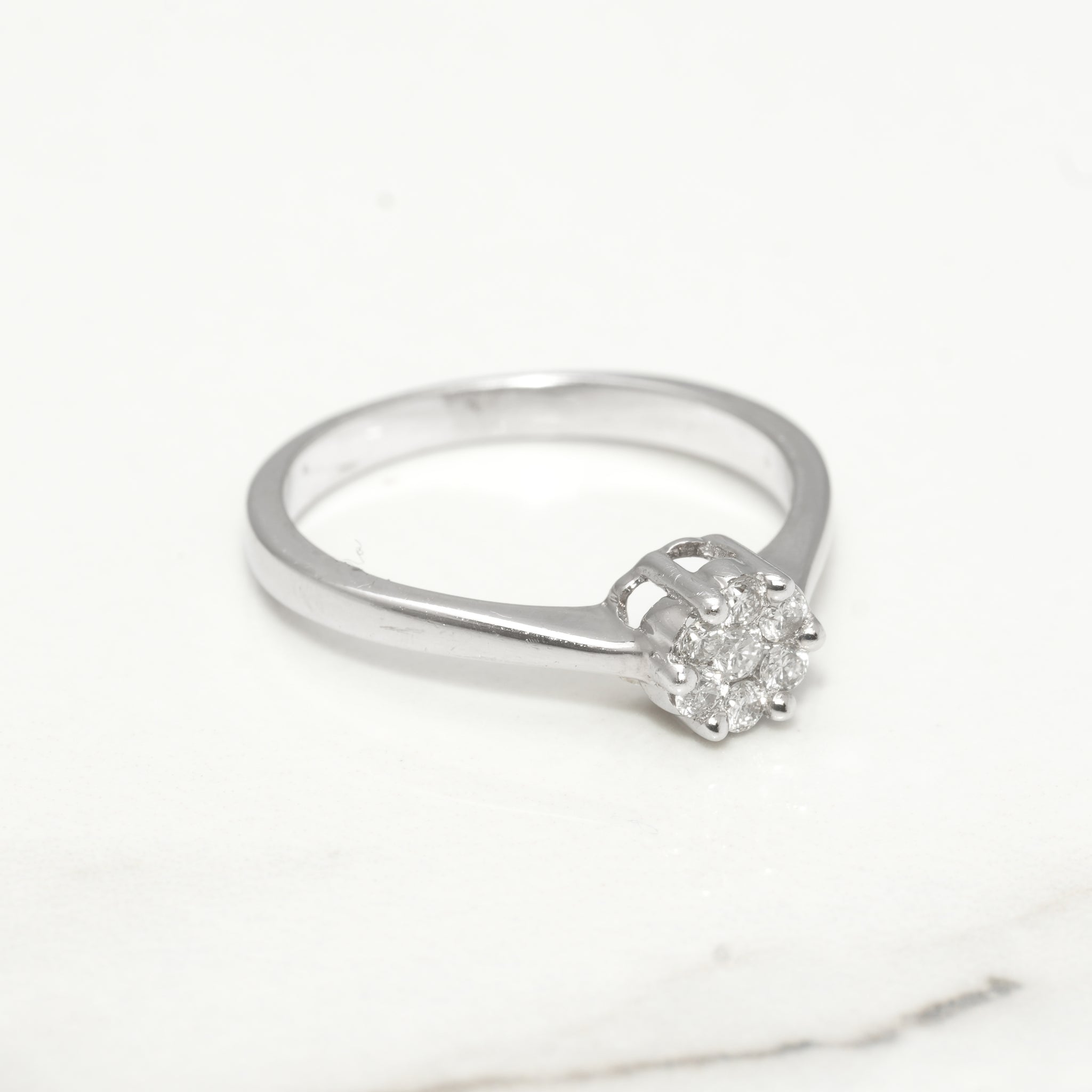 Cette bague en or blanc 18K, ornée d'un composite de diamants naturels, allie élégance et délicatesse, parfaite pour une déclaration d'amour éternelle.