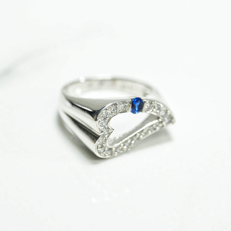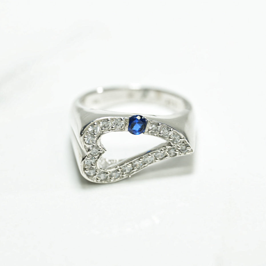 Bague - Or 10K coeur pavé blanc cz bleu - RIG210