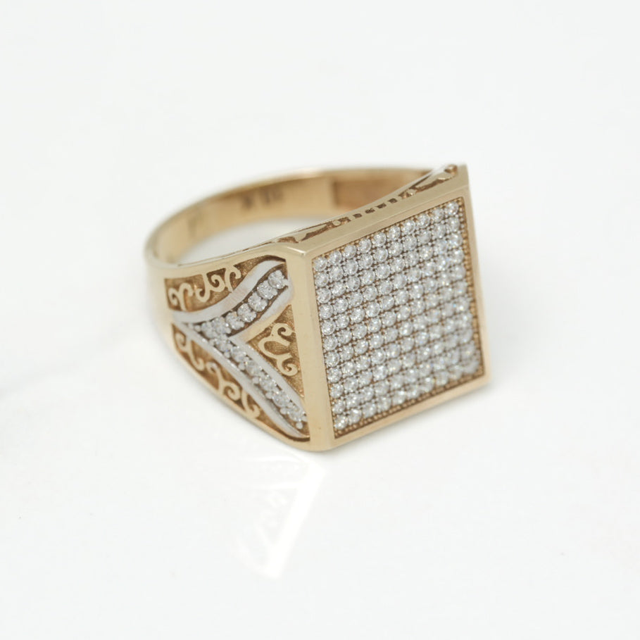 Bague - Or 10K deux tons jaune & blanc carré pavé avec monture orné cz - RIG241