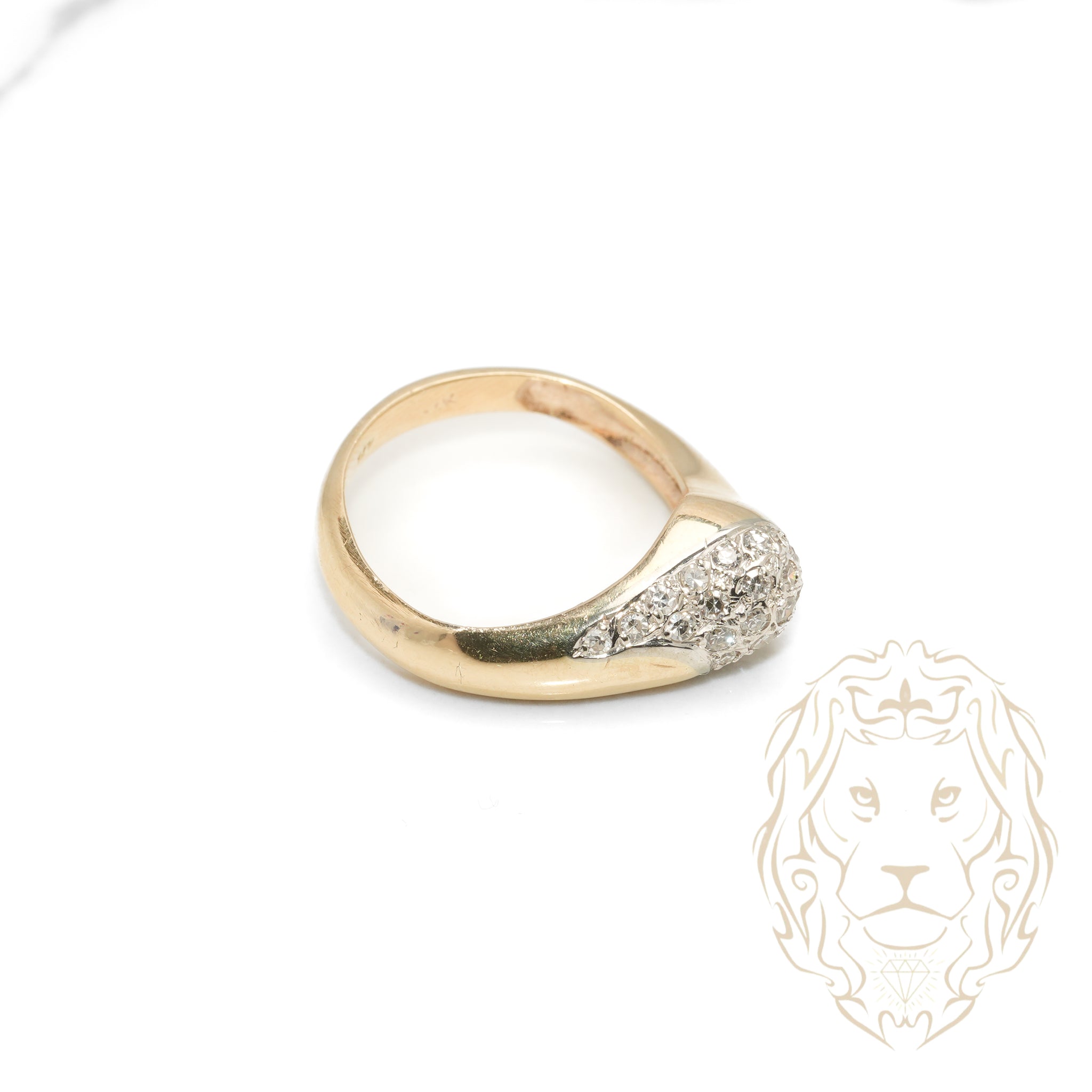 Cette bague en or jaune et blanc 14K présente un motif en dôme délicatement pavé de 0.15CT de diamants naturels. Une fusion parfaite de modernité et de sophistication.