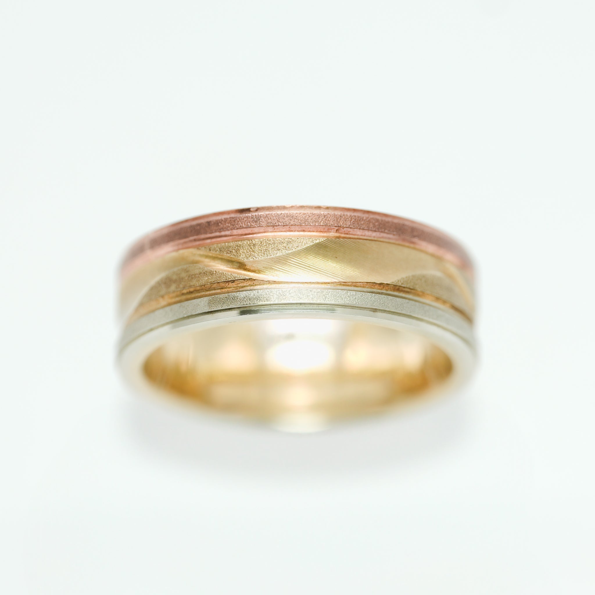 Bague jonc - Or 10K tricolore jaune, blanc & rose - RIG255