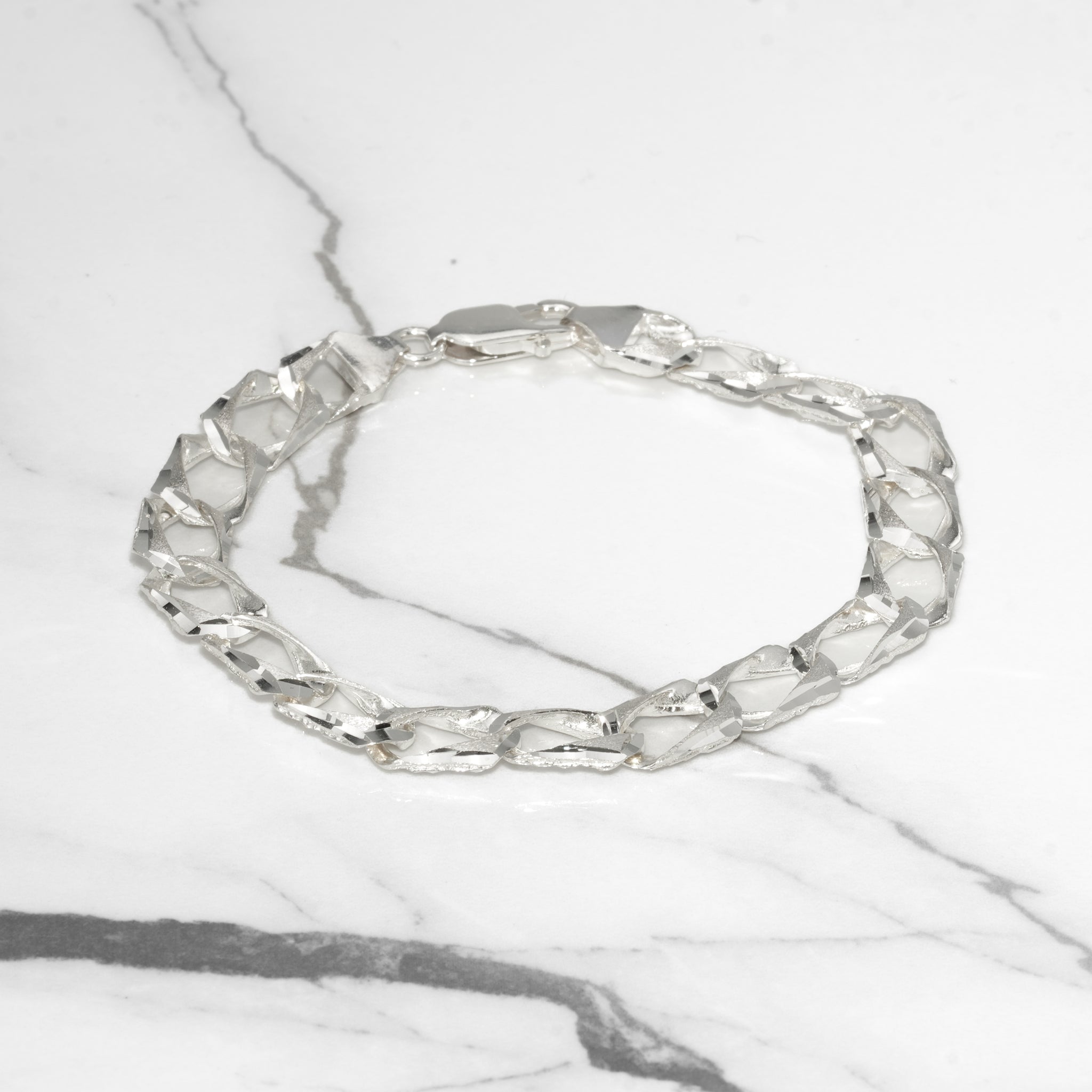 Ce bracelet en argent avec des maillons gourmette de 9mm, coupés au diamant sur les deux faces, est un excellent choix pour un look affirmé. À 8.5", il est élégant et confortable.