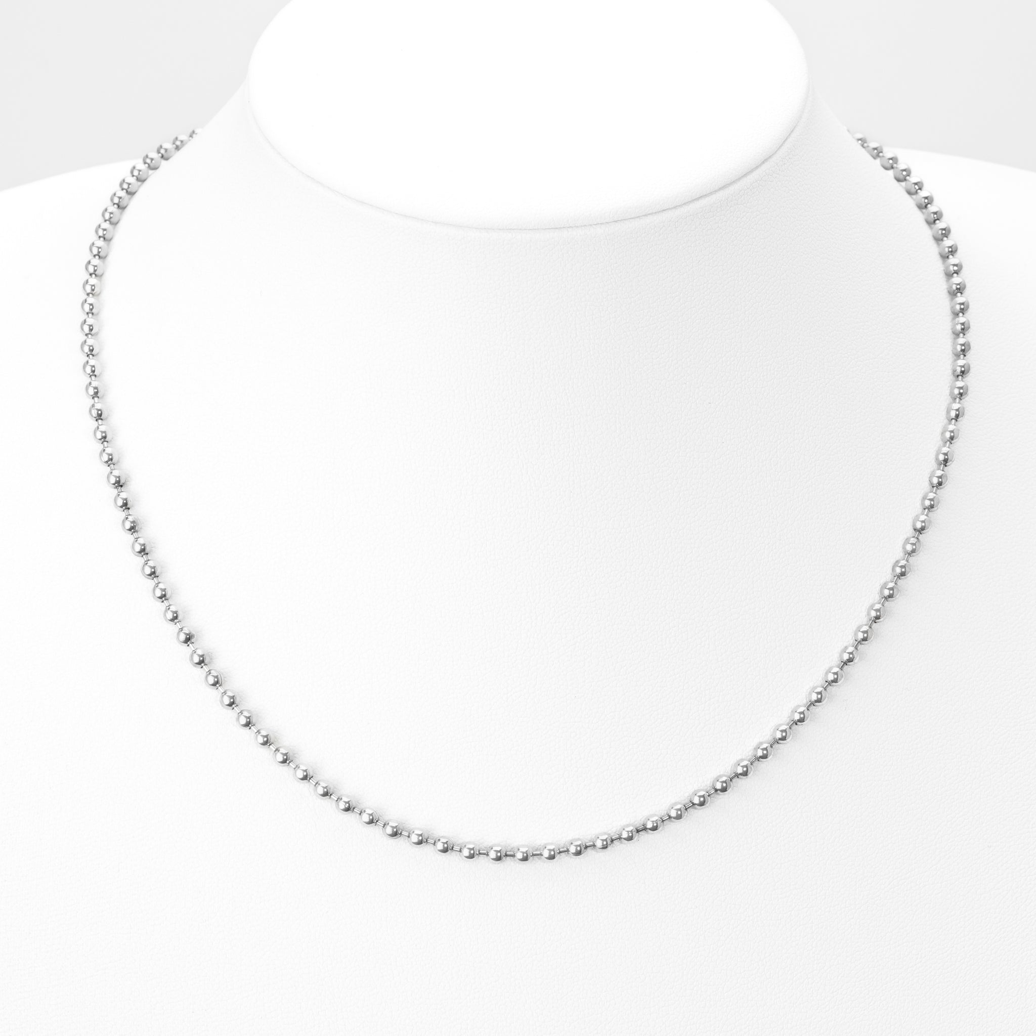 Avec des perles polies de 3mm, cette chaîne en argent est idéale pour ajouter une touche de sophistication à votre style. À 18", elle offre un ajustement parfait pour un look moderne et chic.