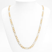 Avec des maillons figaro solides de 5mm et une coupe diamant, cette chaîne en or 10K deux tons jaune et blanc, d'une longueur de 30", offre un look à la fois moderne et imposant.