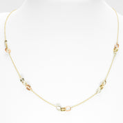 Ce collier de 18 pouces en or 10K tricolore, mélangeant des maillons câble en jaune, blanc et rose, est une véritable œuvre d'art. Son design unique ajoute une touche de sophistication à n'importe quelle tenue, en faisant un choix idéal pour une élégance subtile.