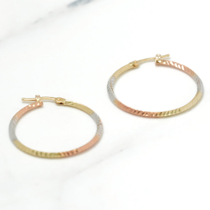 Hoops - Or 10K tricolore jaune, blanc & rose coupe diamant - BOG106