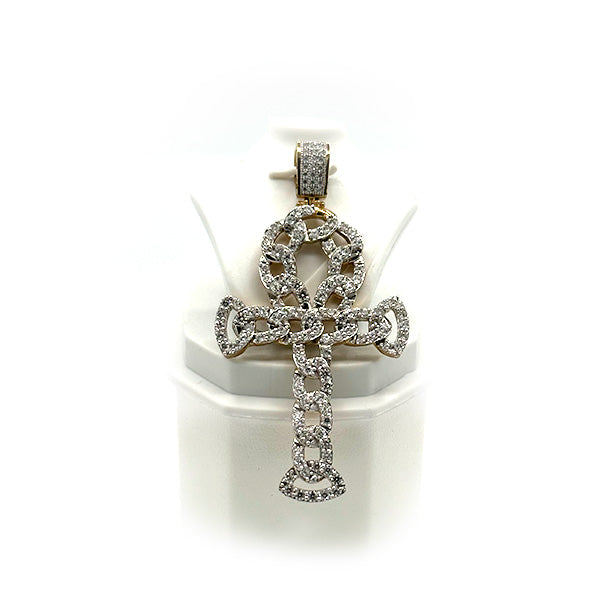 Ce pendentif pour hommes de Ankh est fait entièrement d'or jaune 10k et zircons. Que de beauté!