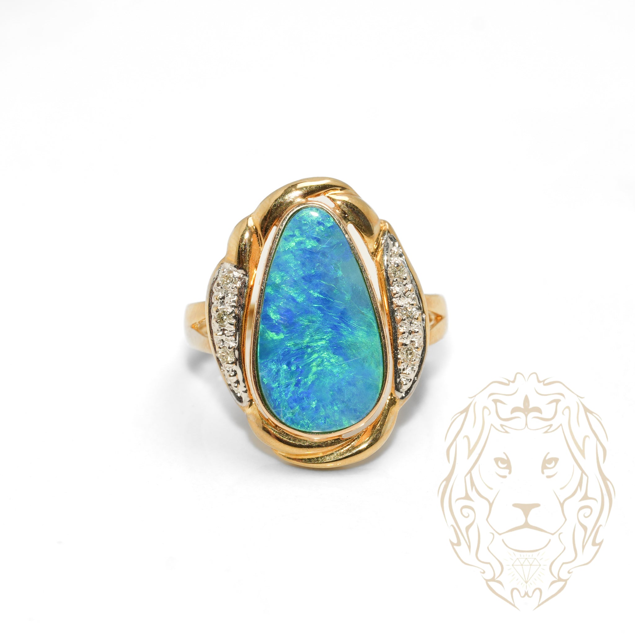 Bague cocktail - Or 10K deux tons jaune & blanc cabochon opale & pavé de diamants naturels 0.08CT - RIGD495