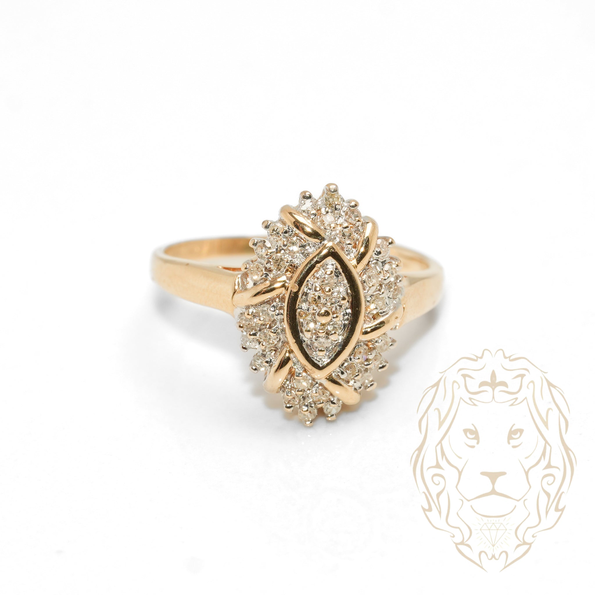 Bague cocktail - Or 14K deux tons jaune & blanc grappe de diamants naturels 0.25CT - RIGD497