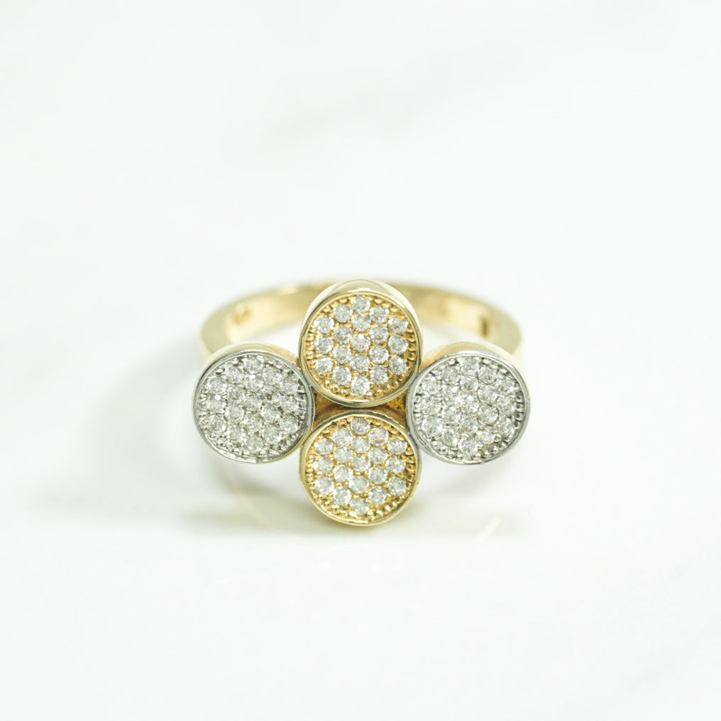 Bague - Or 10K quatre cercles pavé deux tons jaune & blanc cz - RIG161