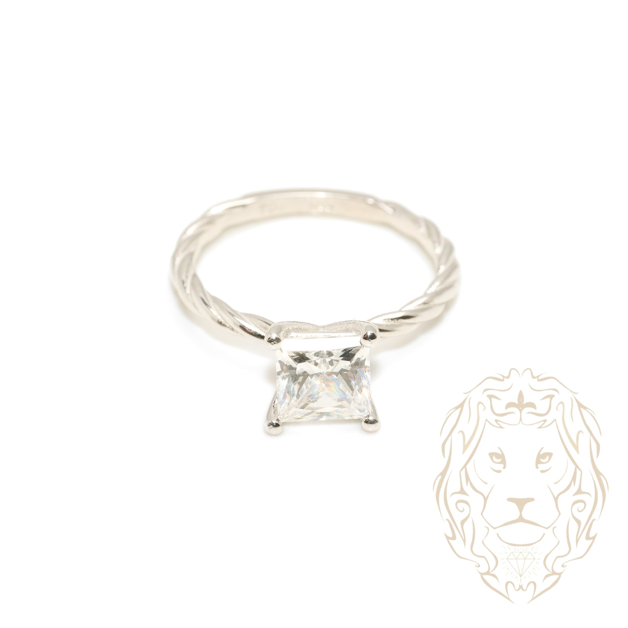 Cette bague en or blanc 10K présente une pierre CZ coupe princesse sublimée par une monture twist élégante et contemporaine.