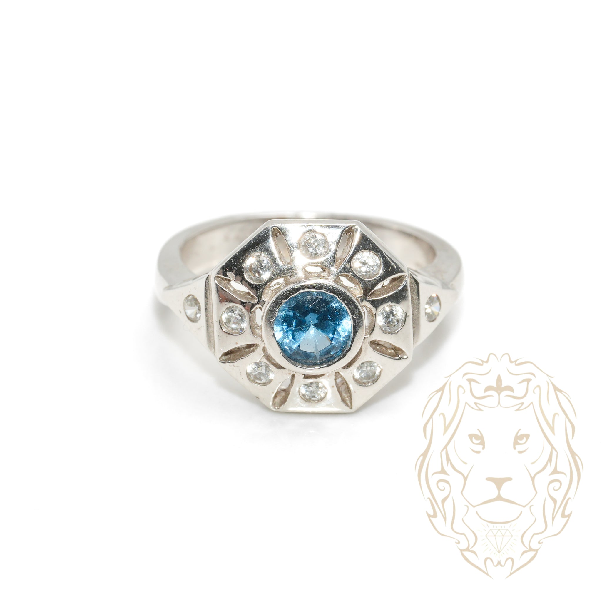 Bague - Or 10K blanc topaze & diamants naturels 0.08CT - RIGD483