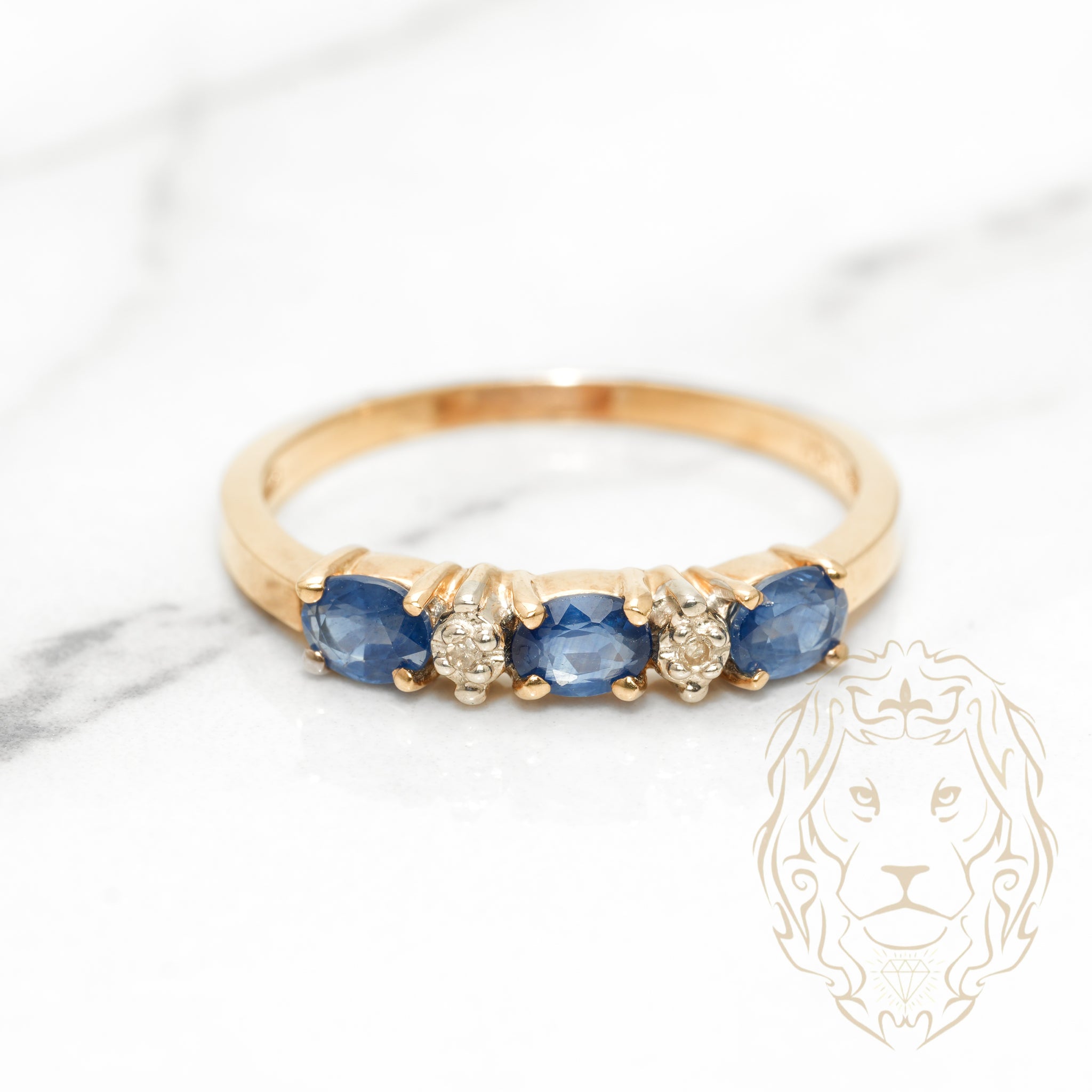 Bague - Or 10K jaune sertie de saphirs coupe ovale 0.60CT & diamants naturels coupe brillant 0.04CT - RIGD133