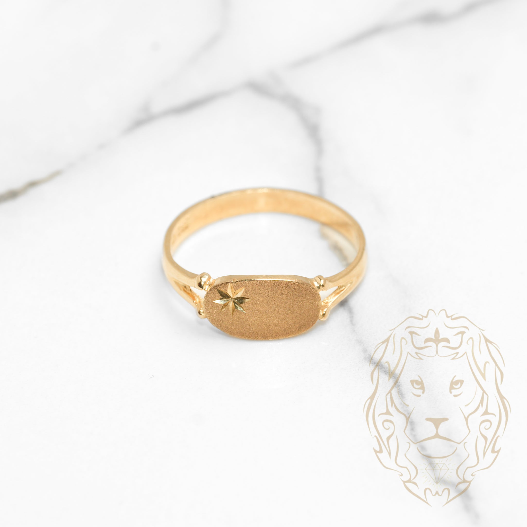Bague - Or 10K jaune signet avec étoile coupe diamant & finition sablée - RIG758
