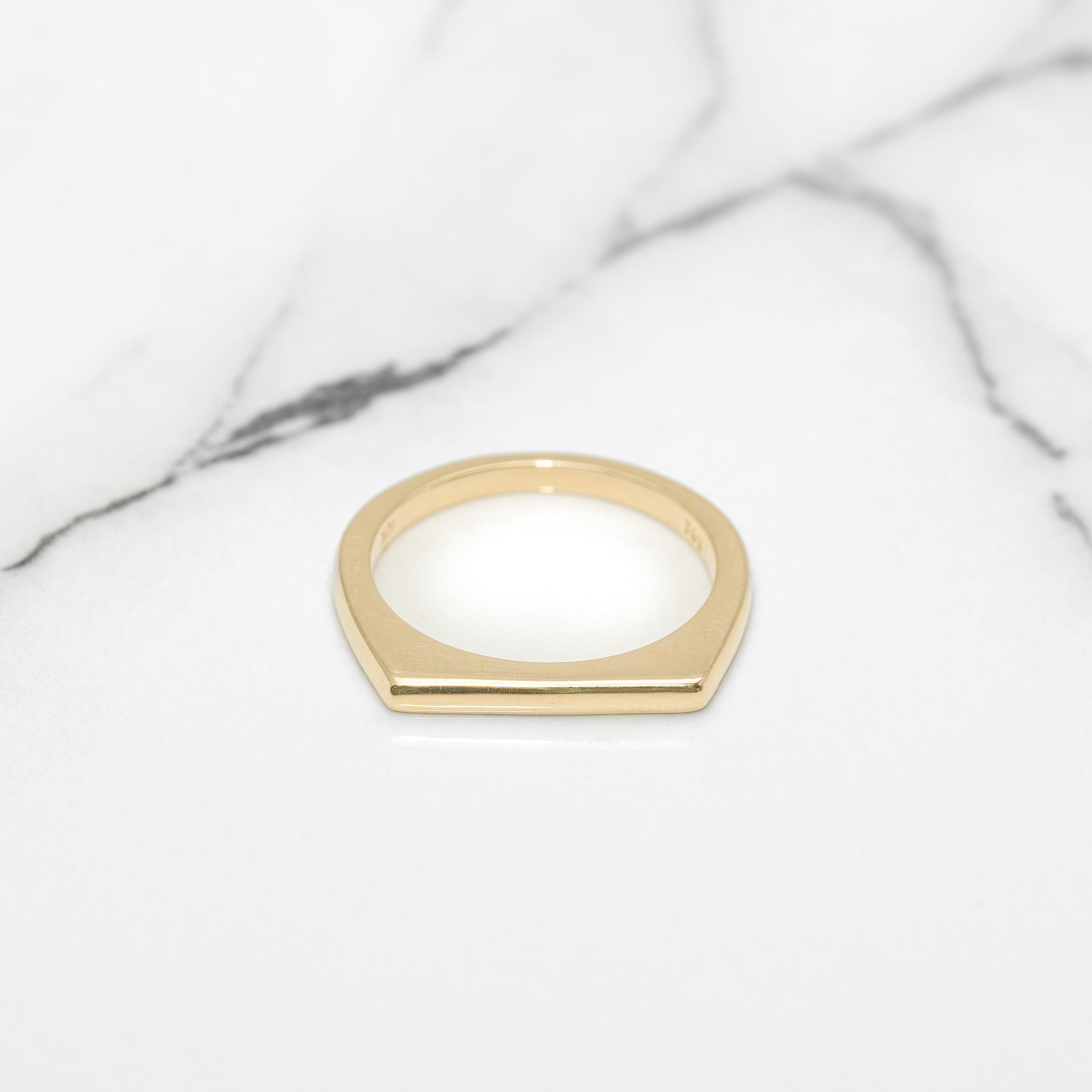 Cette bague en or 10K jaune à la barre mince est conçue pour être superposée avec d'autres anneaux, offrant un look personnalisable et élégant.