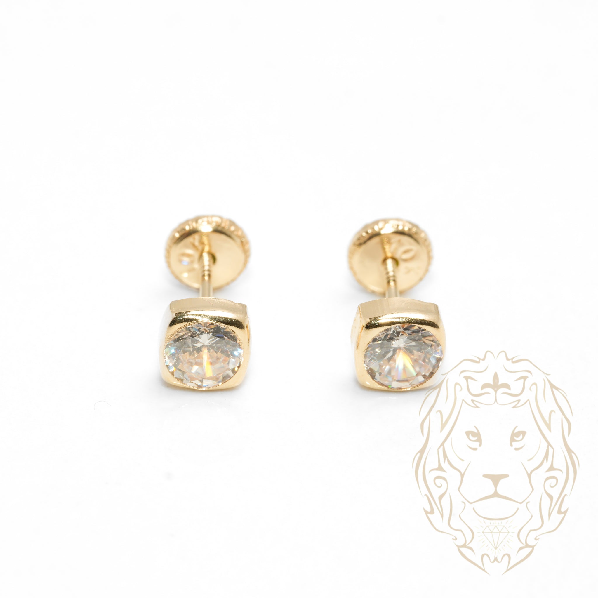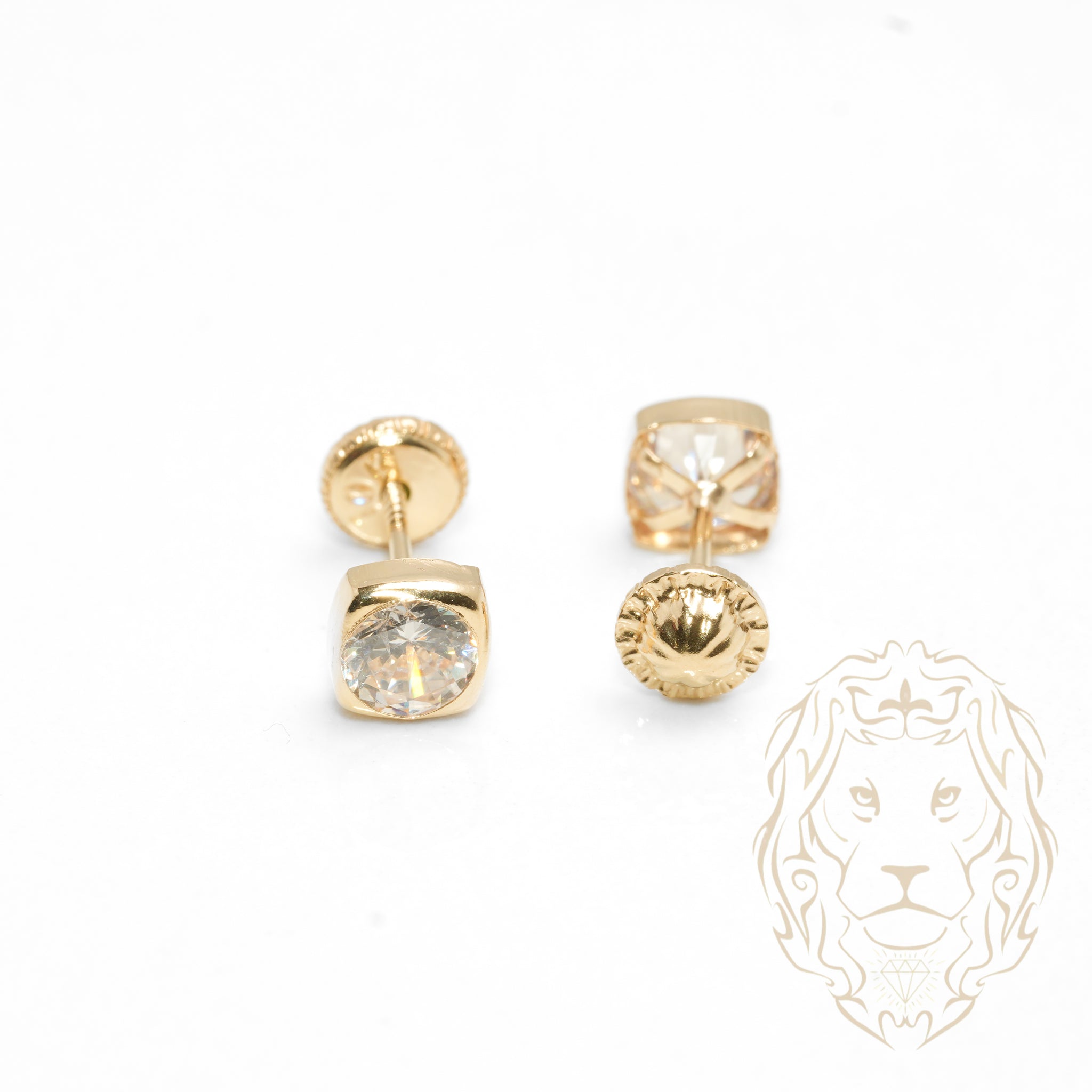 Studs à visser - Or 10K jaune carré serti de cz coupe rond 5mm - BOG757