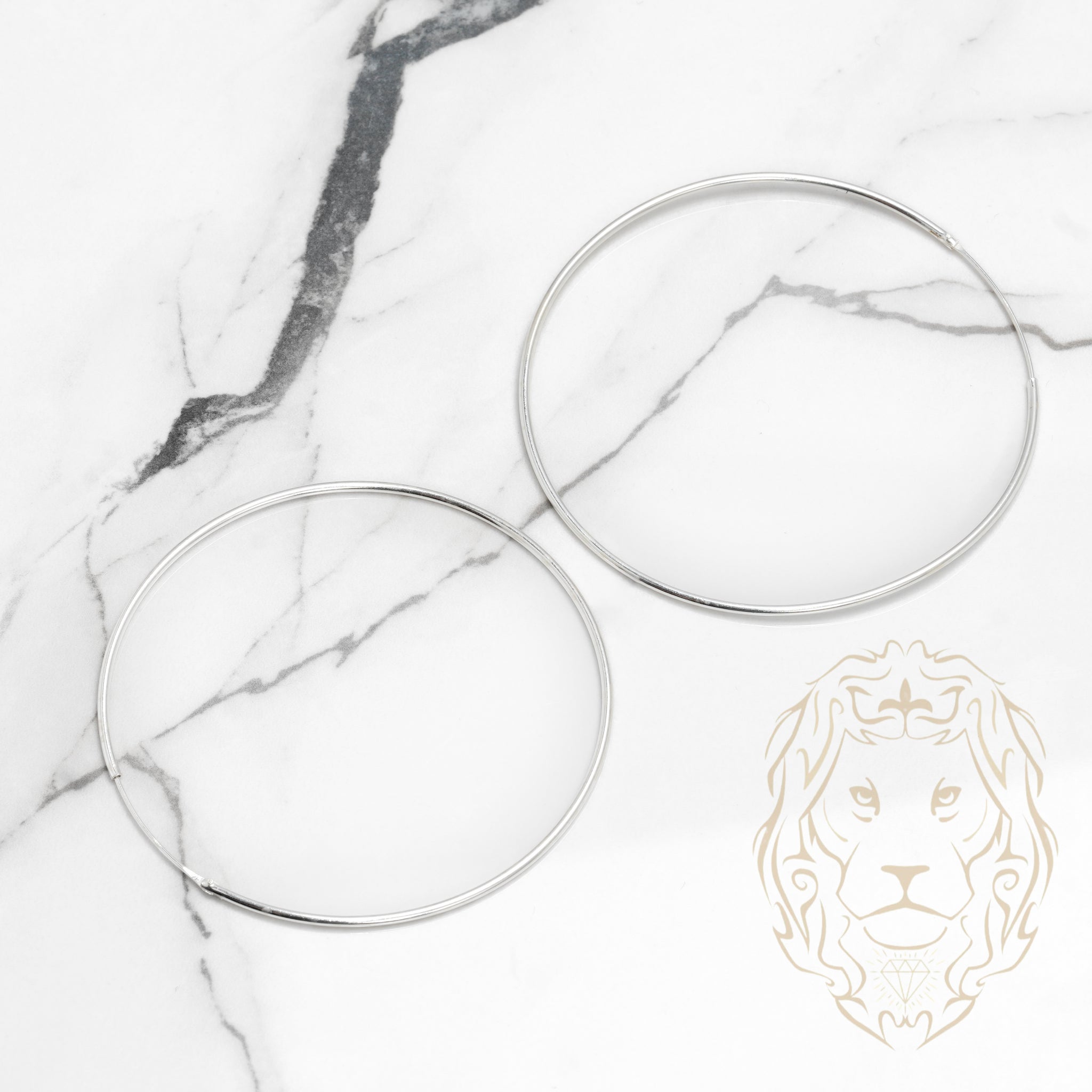 Ces grandes créoles en argent de 70mm offrent un effet saisissant tout en restant confortables grâce à leur finesse de 1.5mm.