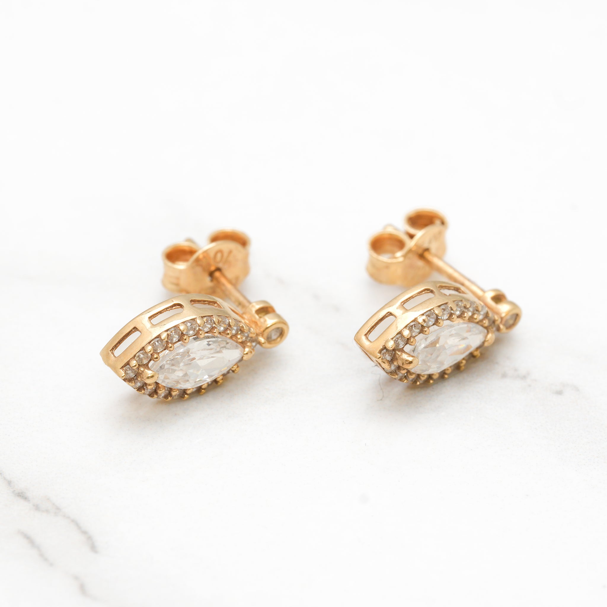 Studs - Or 10K jaune pierre cz coupe marquise avec monture halo pavé cz - BOG431