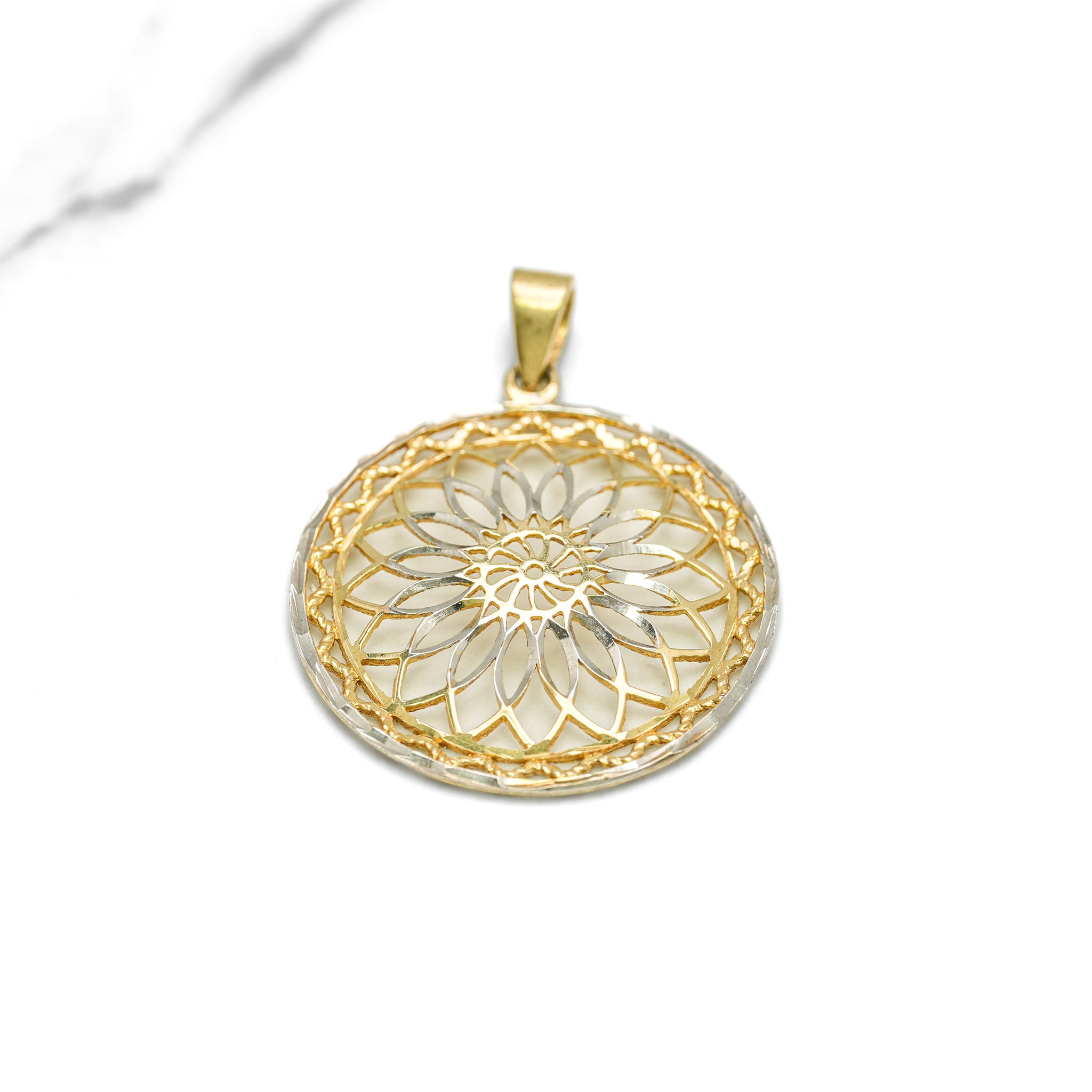 Pendentif - Or 10K deux tons jaune & blanc mandala de fleur - PEG268