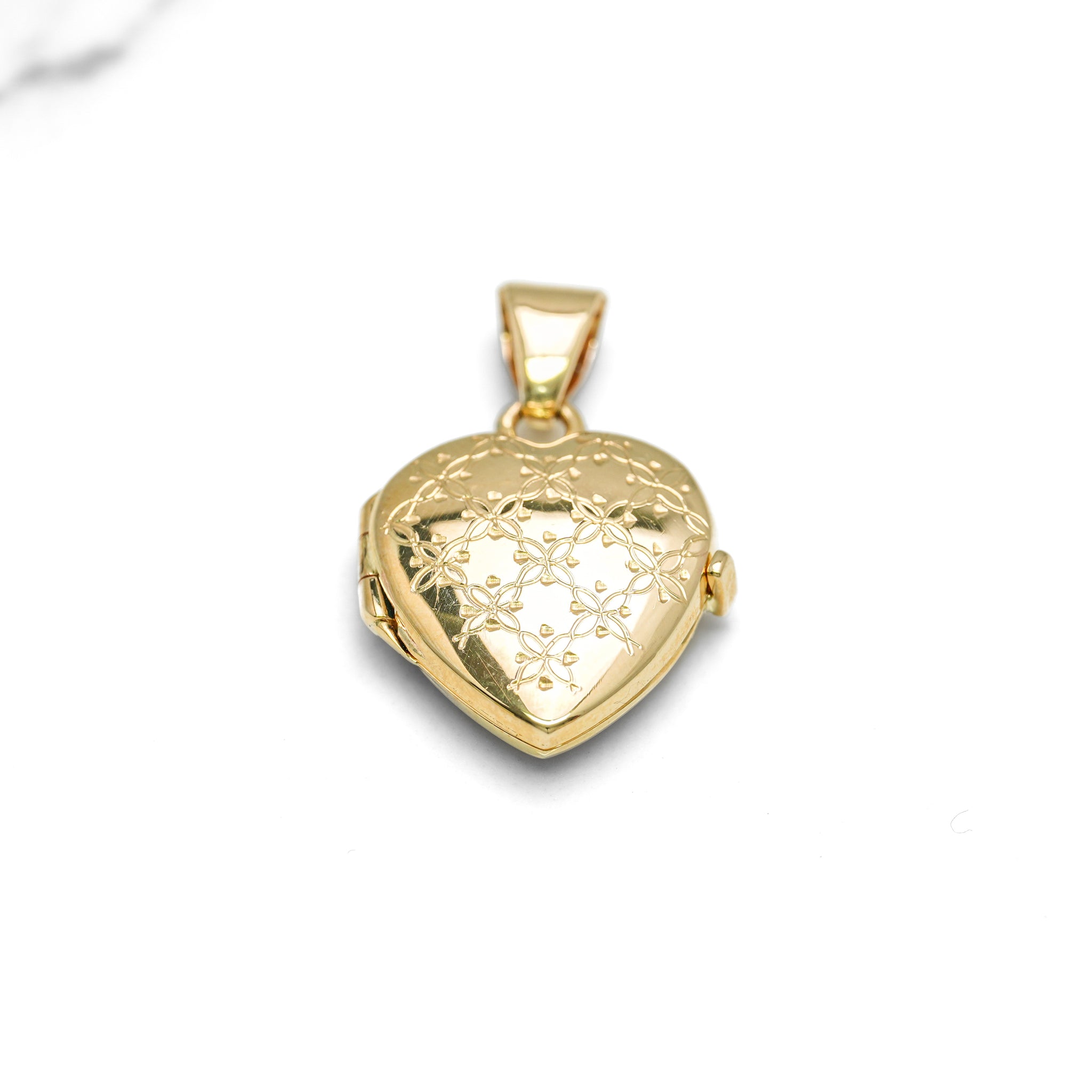 Pendentif - Or 10K jaune médaillon photo en forme de coeur avec motif de fleur gravé - PEG273