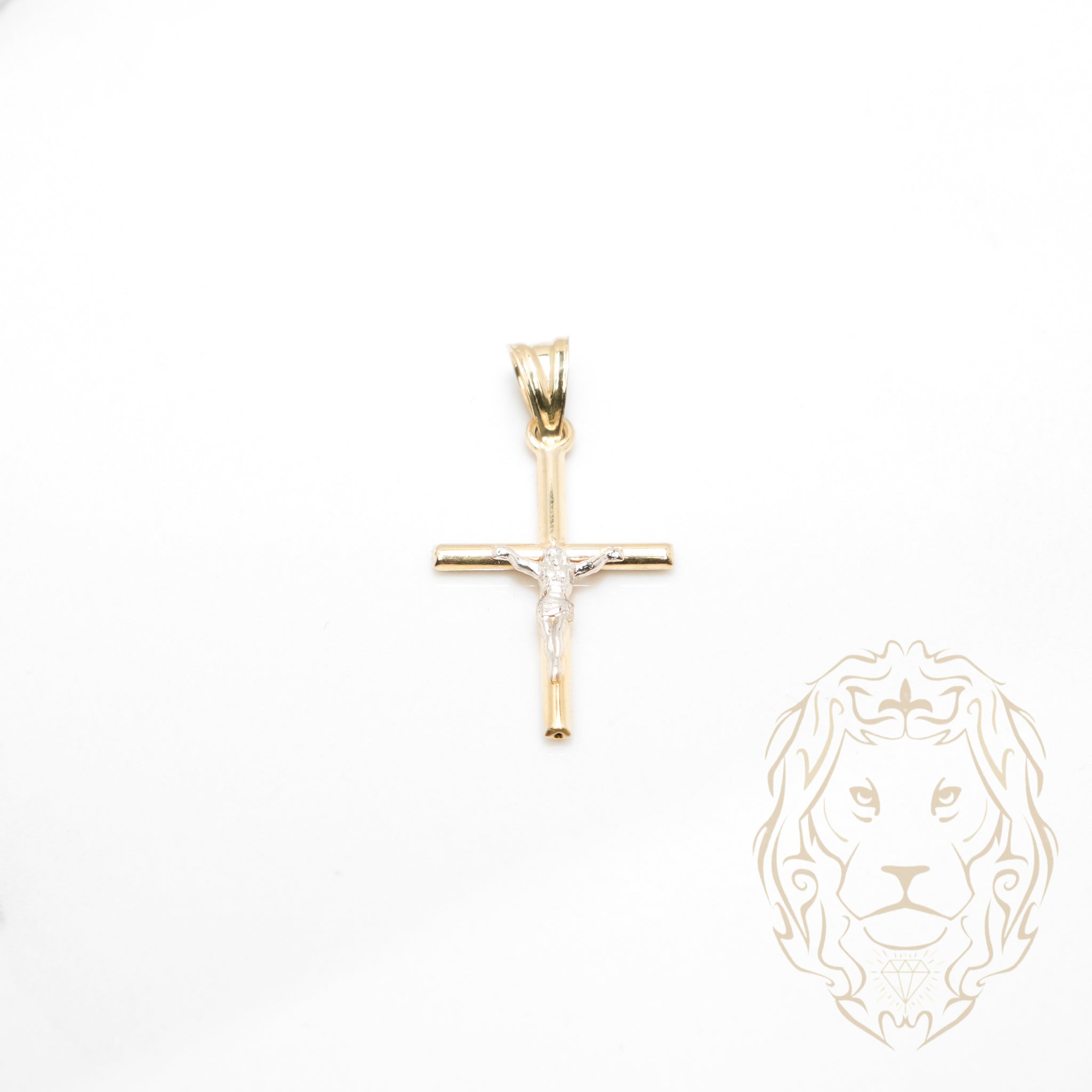 Pendentif - Or 10K deux tons jaune & blanc croix avec Jésus - PEG905