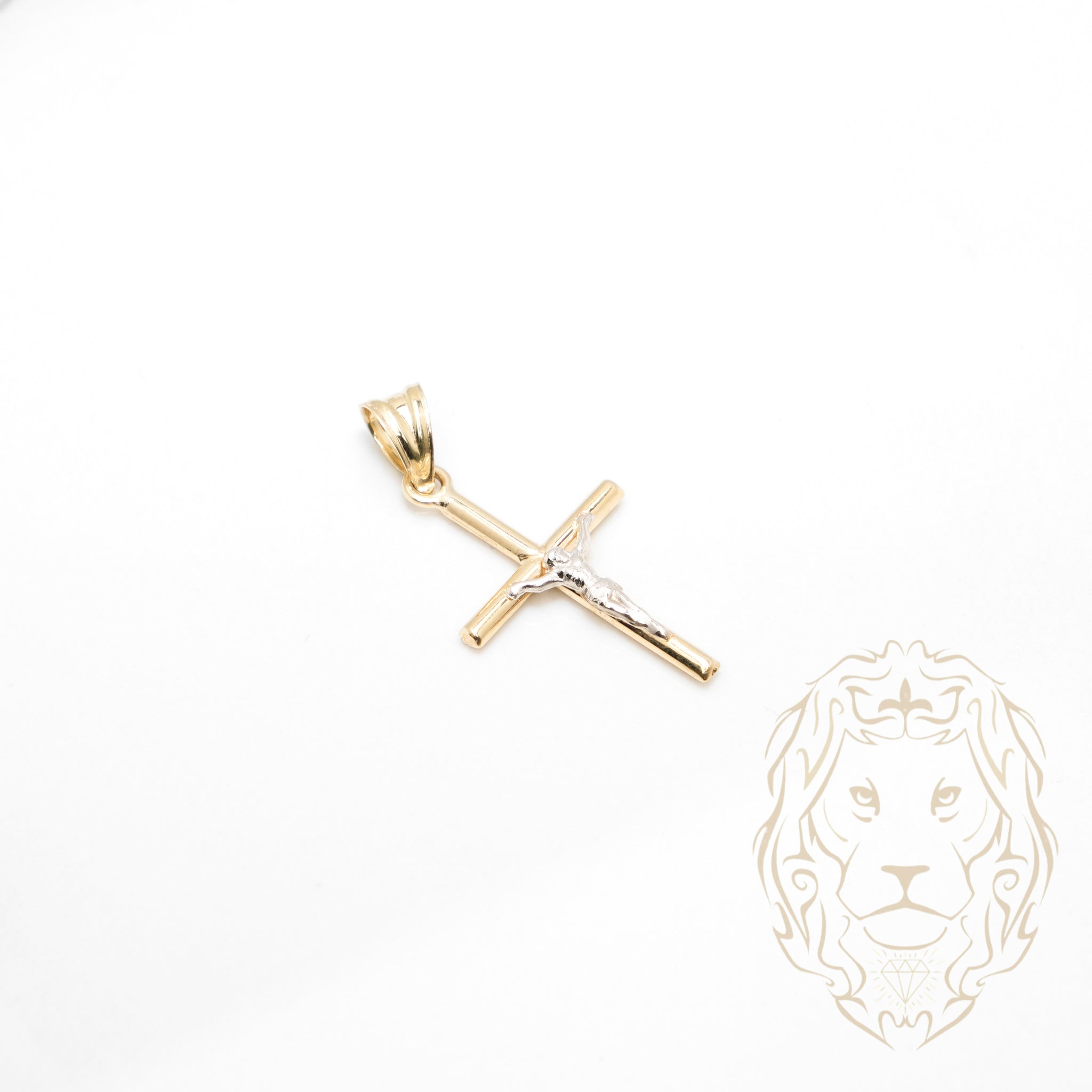 Ce pendentif en or 10K deux tons représente une croix avec Jésus au design sobre et intemporel, parfait pour un port quotidien.