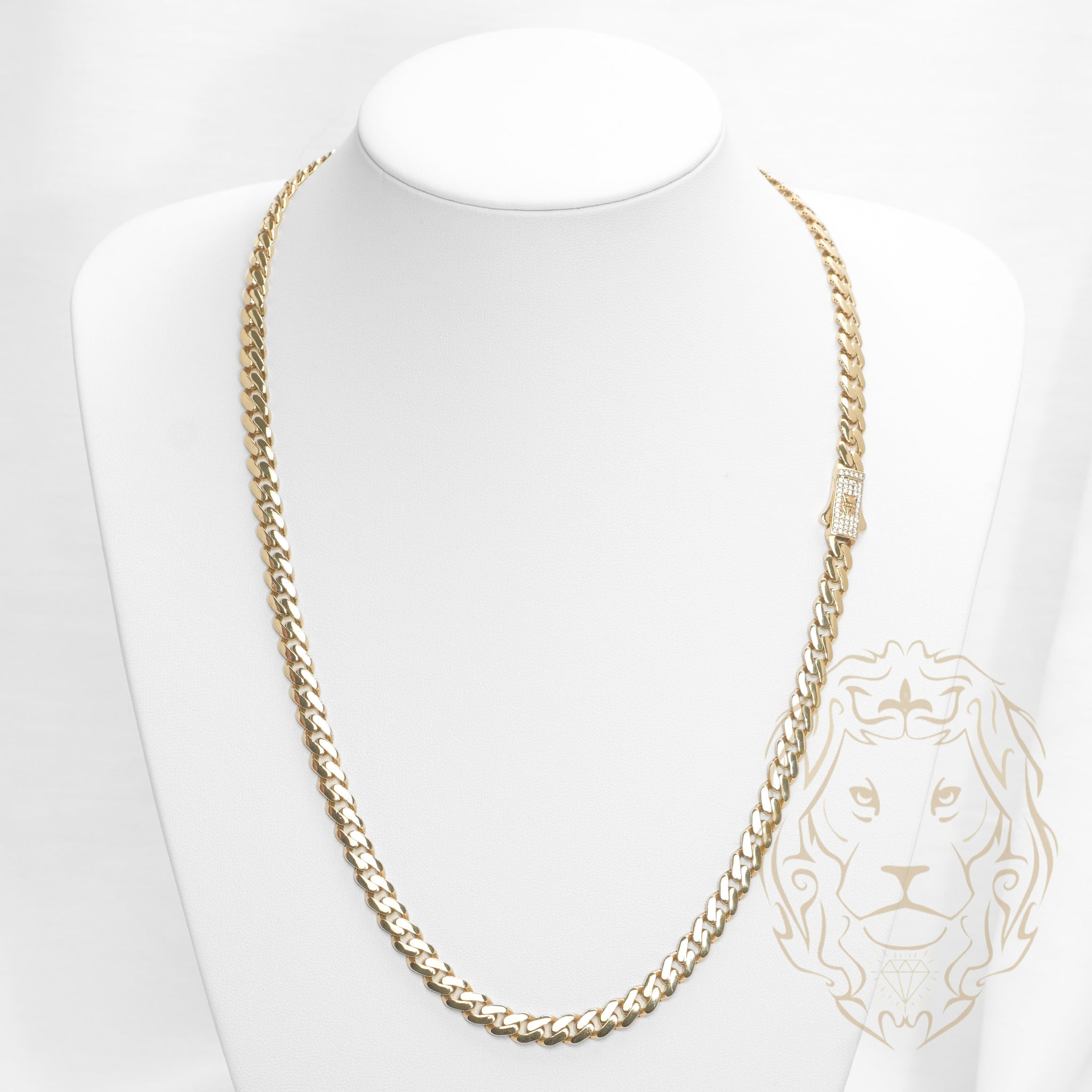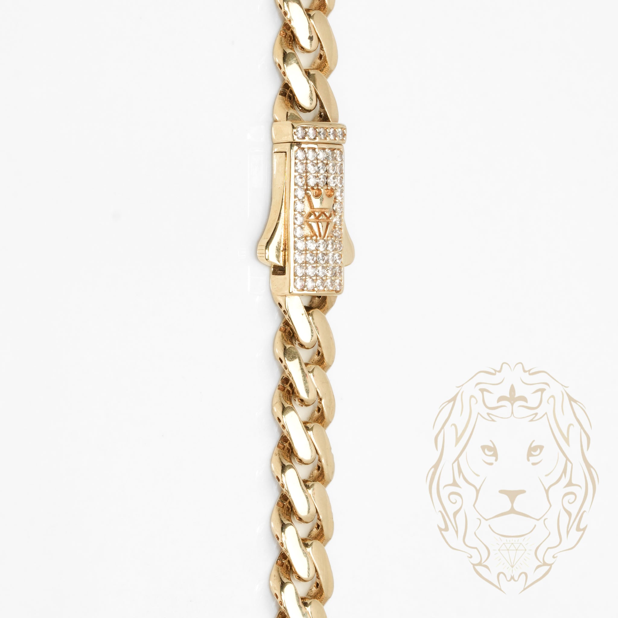 Chaîne Monaco 7mm en or jaune 10K, fermoir box lock orné de pierres cz pour une touche scintillante.
