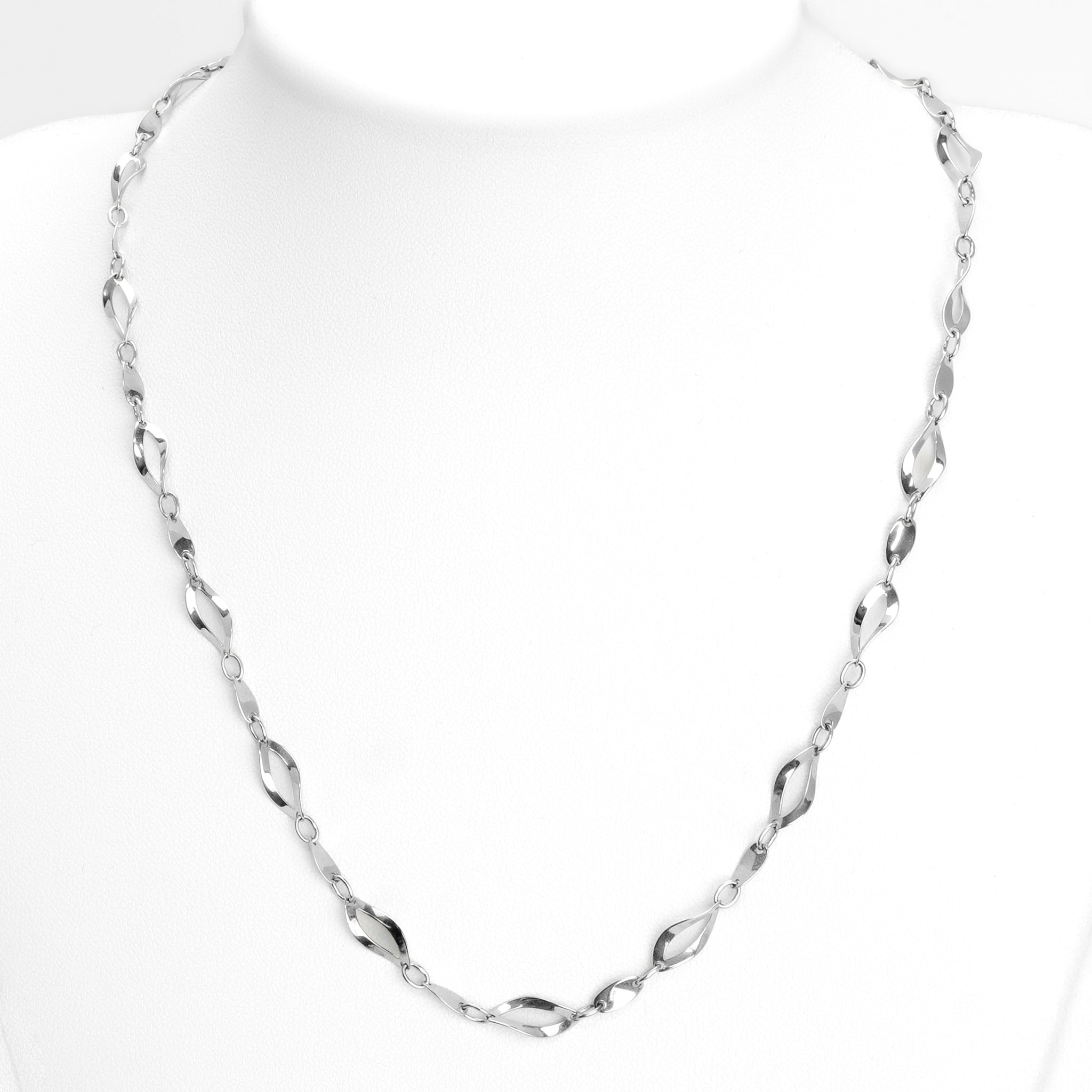 Ce collier en or 10K blanc avec des maillons mixte tournoyés est idéal pour ceux qui recherchent un accessoire unique et élégant.