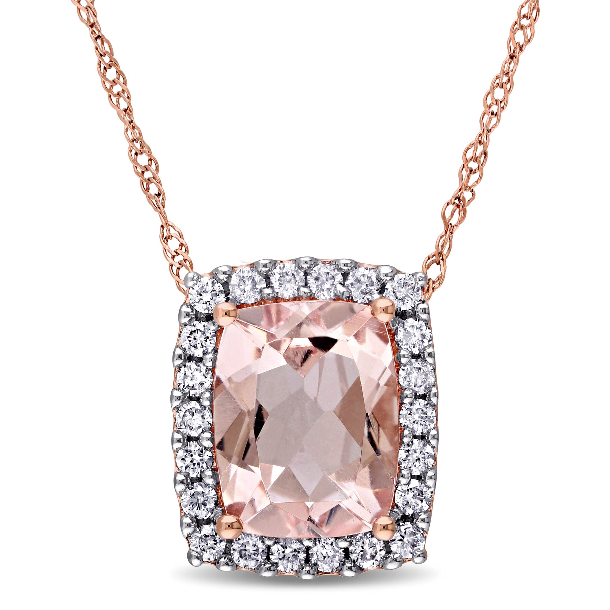 Collier - Or 14K rose pendentif halo morganite 1.77CT & pavé de diamants naturels 0.24TCW - CHGD014