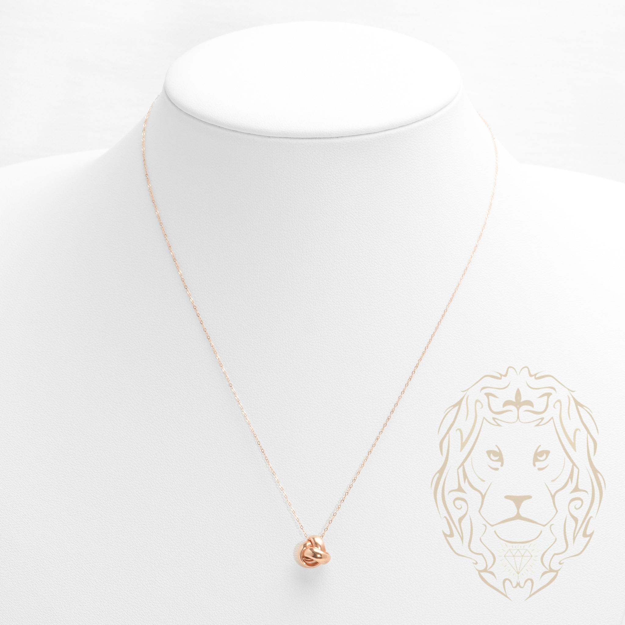 Ce collier en or rose 14K présente un pendentif en forme de nœud raffiné, incarnant la subtilité et la féminité dans sa forme la plus poétique.