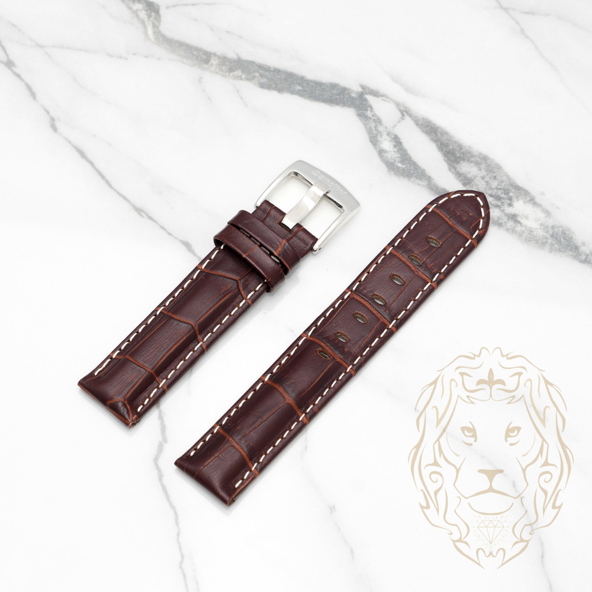 Bracelet en Cuir - 518S Alligator Brun & Blanc