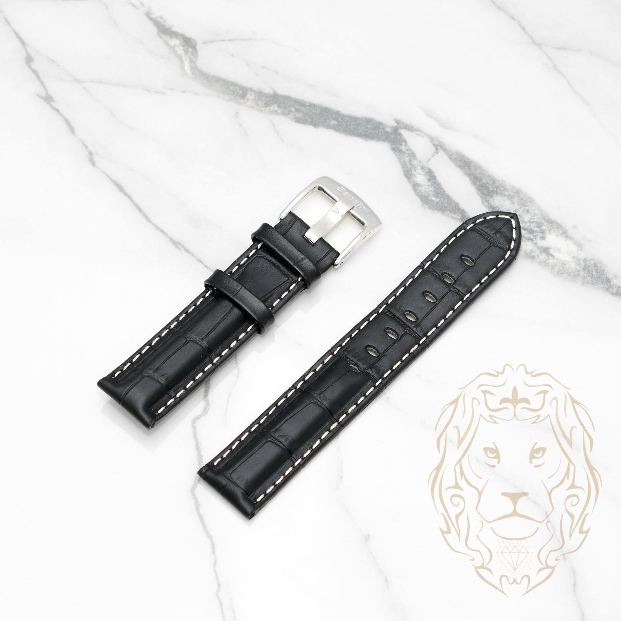 Bracelet en Cuir - 518S Alligator Noir & Blanc