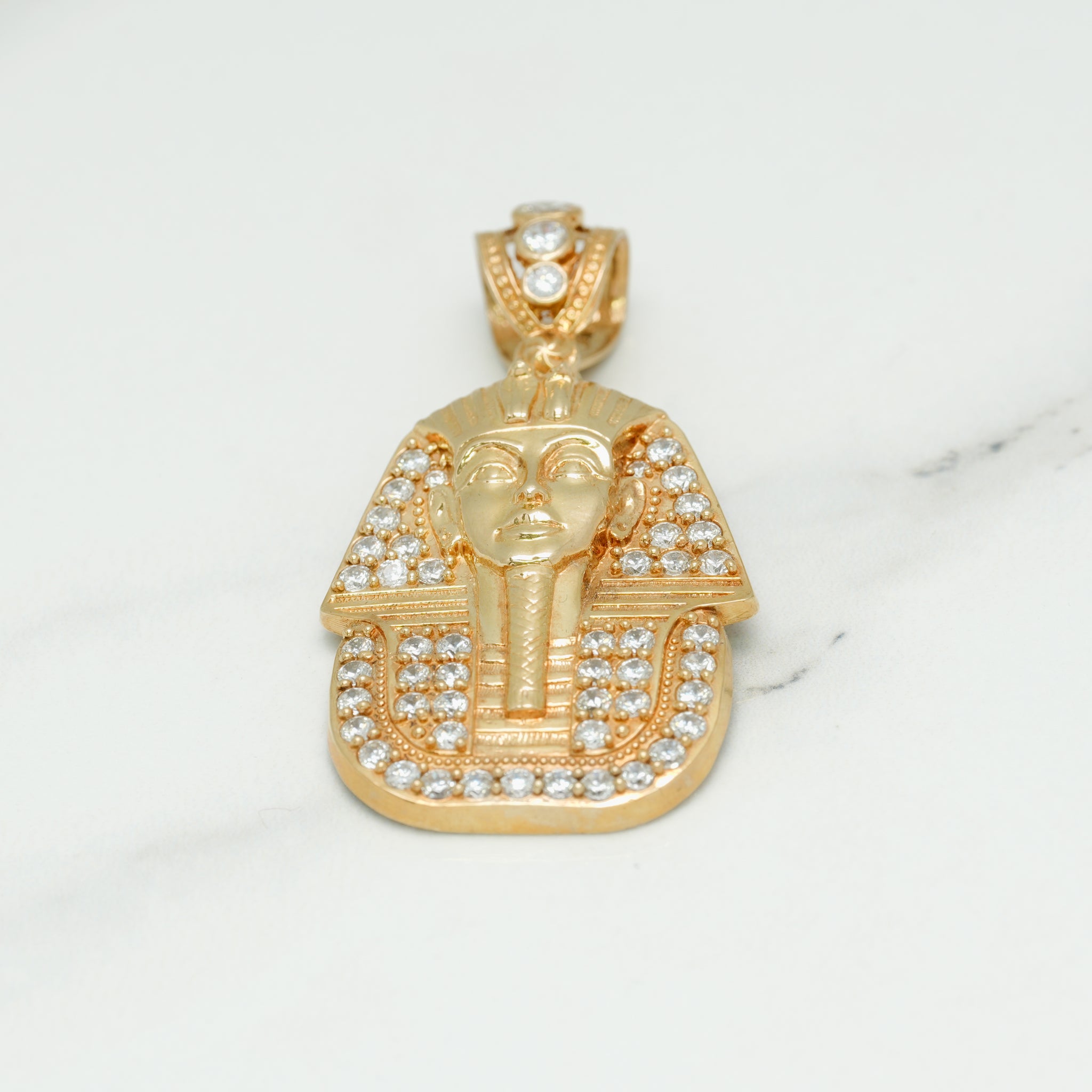 Ce pendentif en or 10K jaune, représentant un pharaon pavé de zircones cubiques (cz), capture la majesté et l'élégance de l'Égypte antique. Un bijou remarquable pour ceux qui aiment l'histoire et l'éclat.