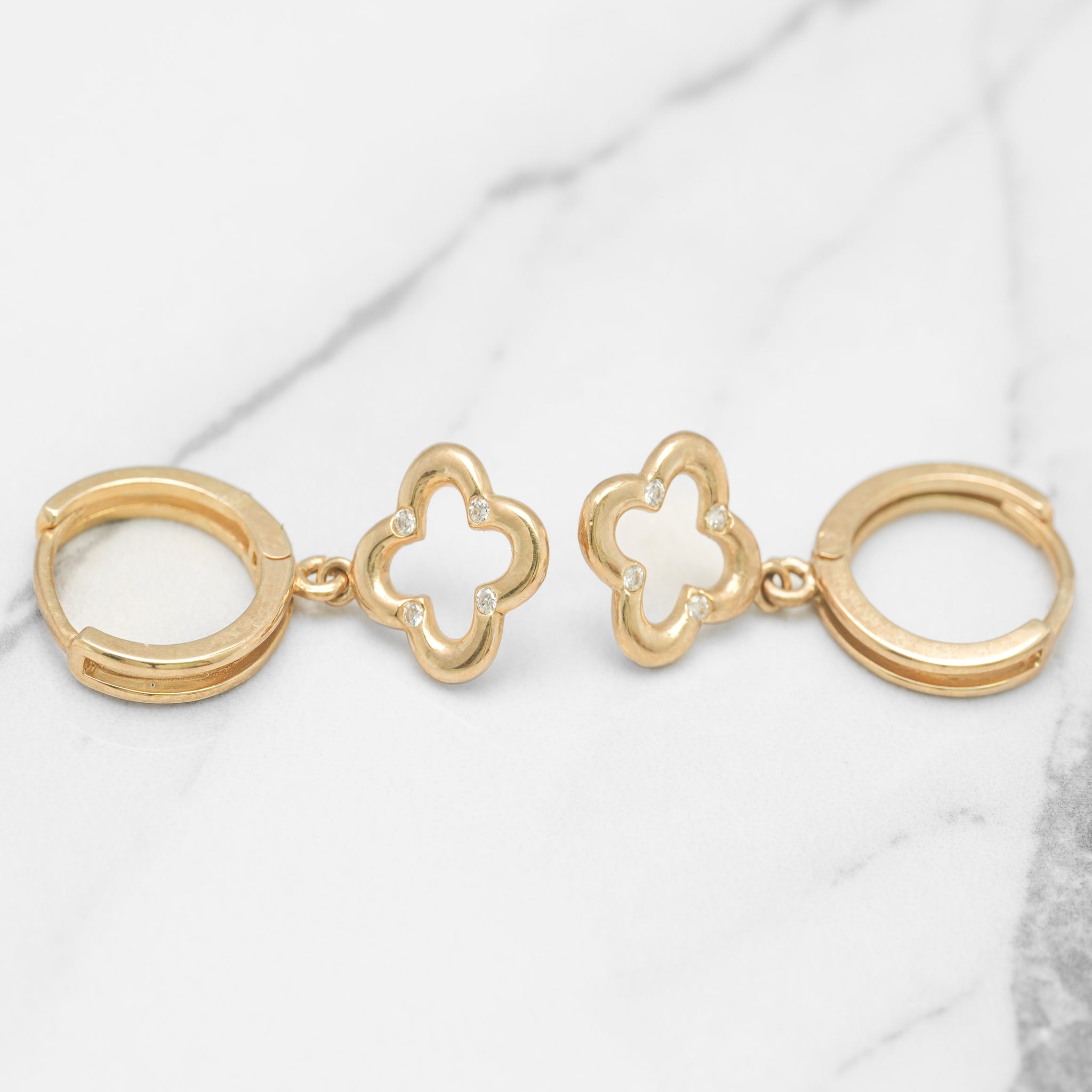 Ces huggies en or 10K jaune, ornés de trèfles pendants, ajoutent une touche de chance et d'élégance à votre look.