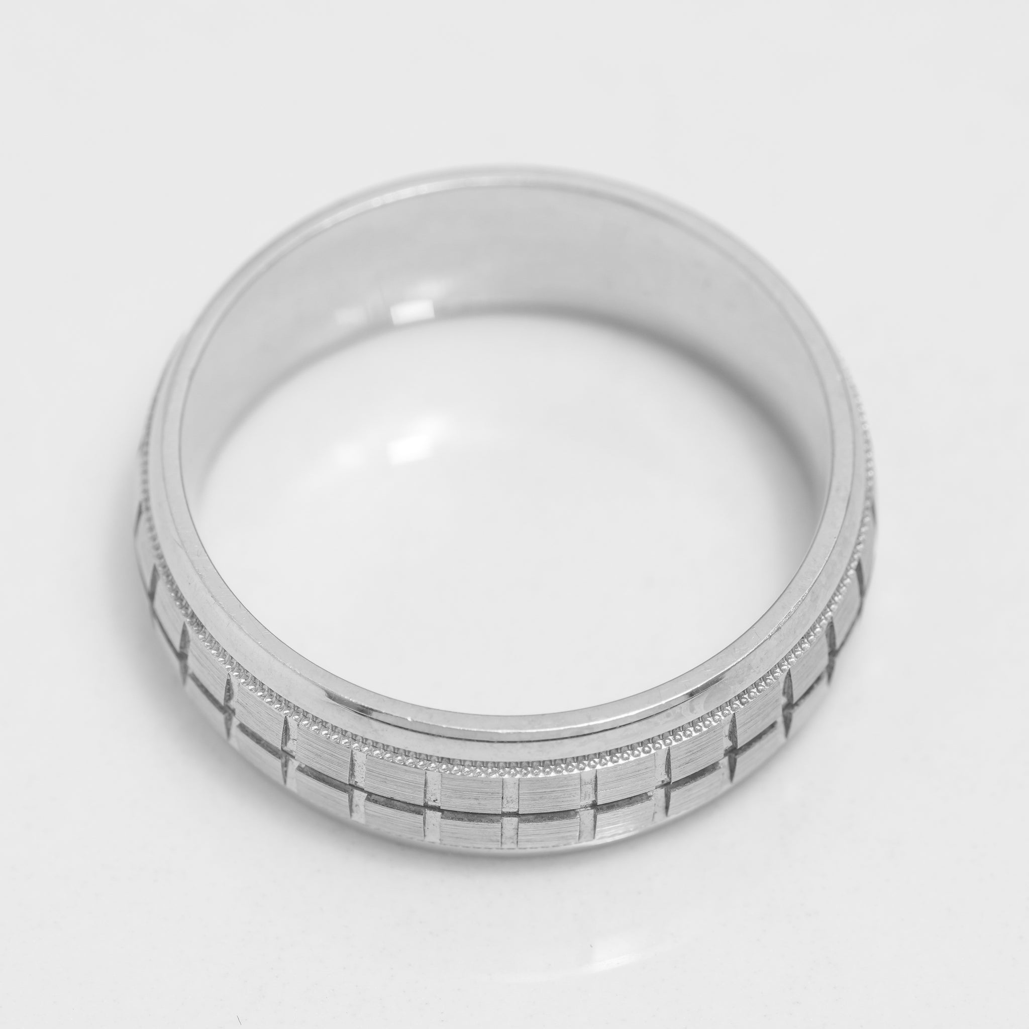 Bague - Or 10K blanc jonc motif carré finition brossé - RIG289