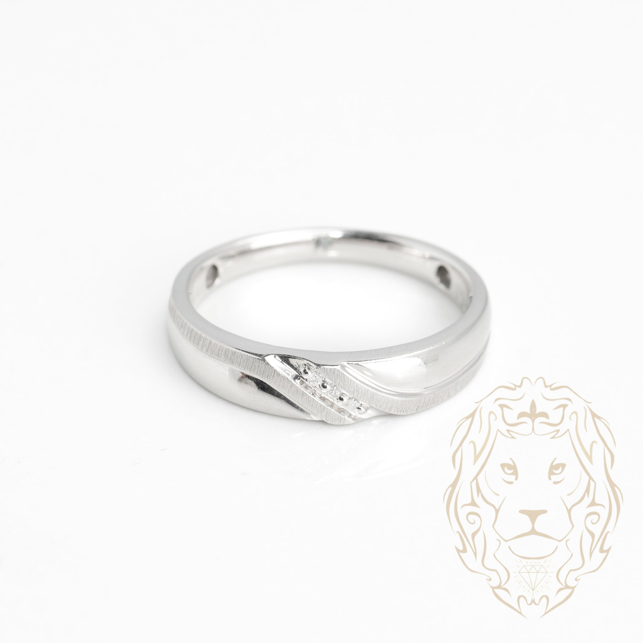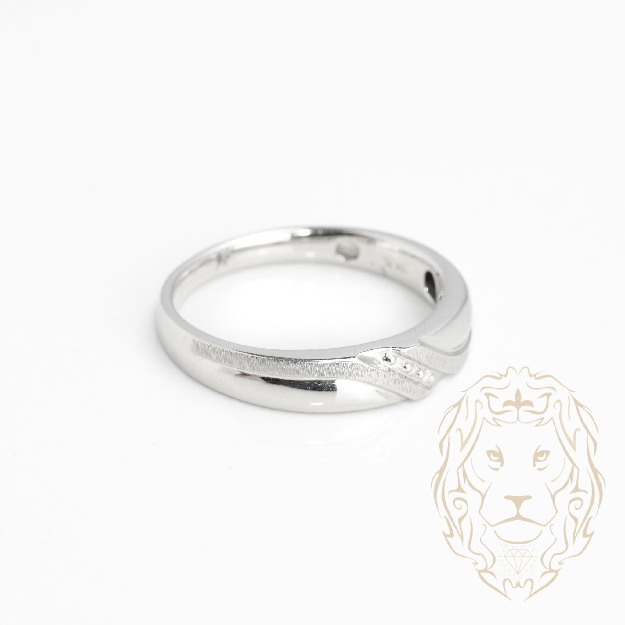 Bague jonc - Or 10K blanc trois pierres diamants naturels 0.03CT finition brossée & polie - RIGD349