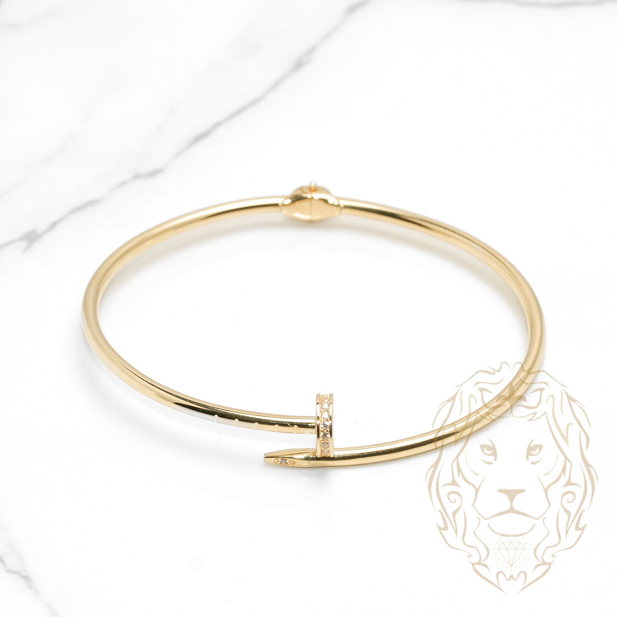 Ce jonc en or jaune 10K adopte une forme de clou serti de pierres CZ, pour une allure audacieuse et moderne.