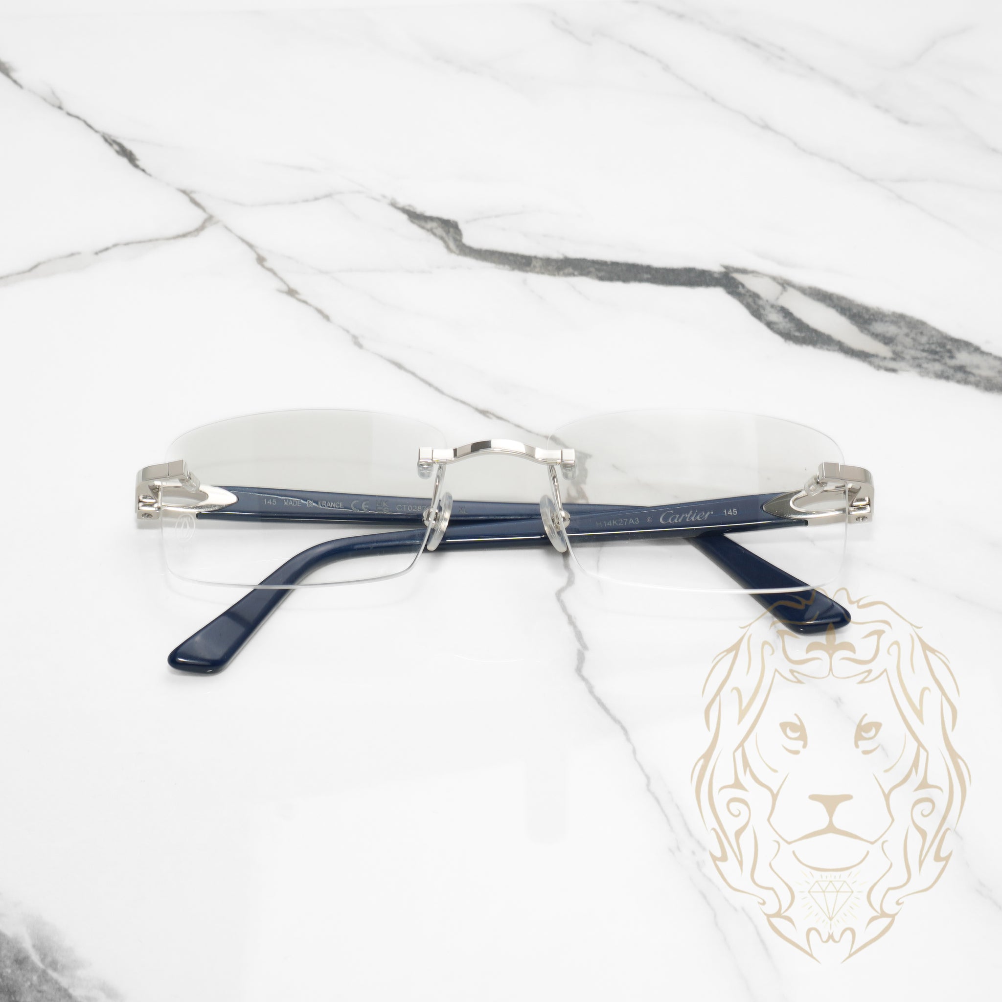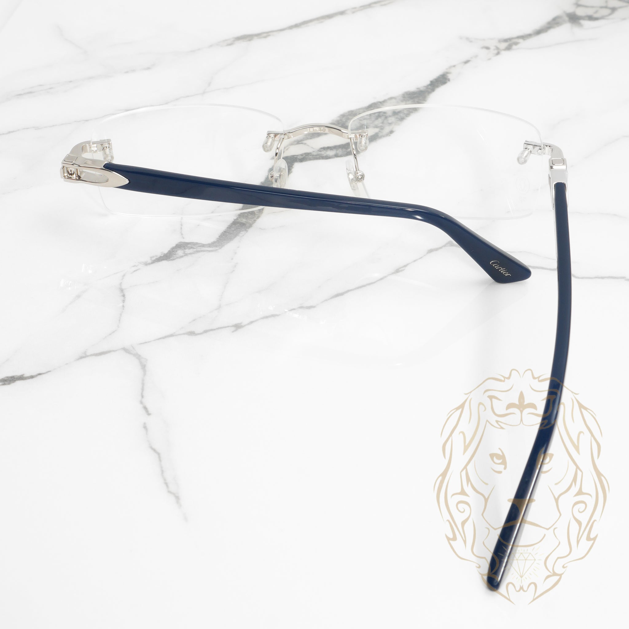 Lunettes Cartier – Signature C de Cartier platine & bleu avec verres clairs CT0287O-012 XL