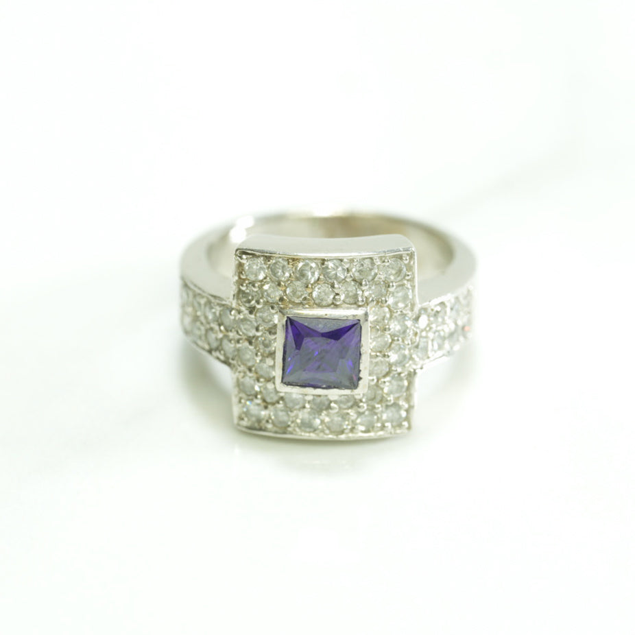 Bague - Or 10K pierre coupe princess pavé blanc cz mauve - RIG200
