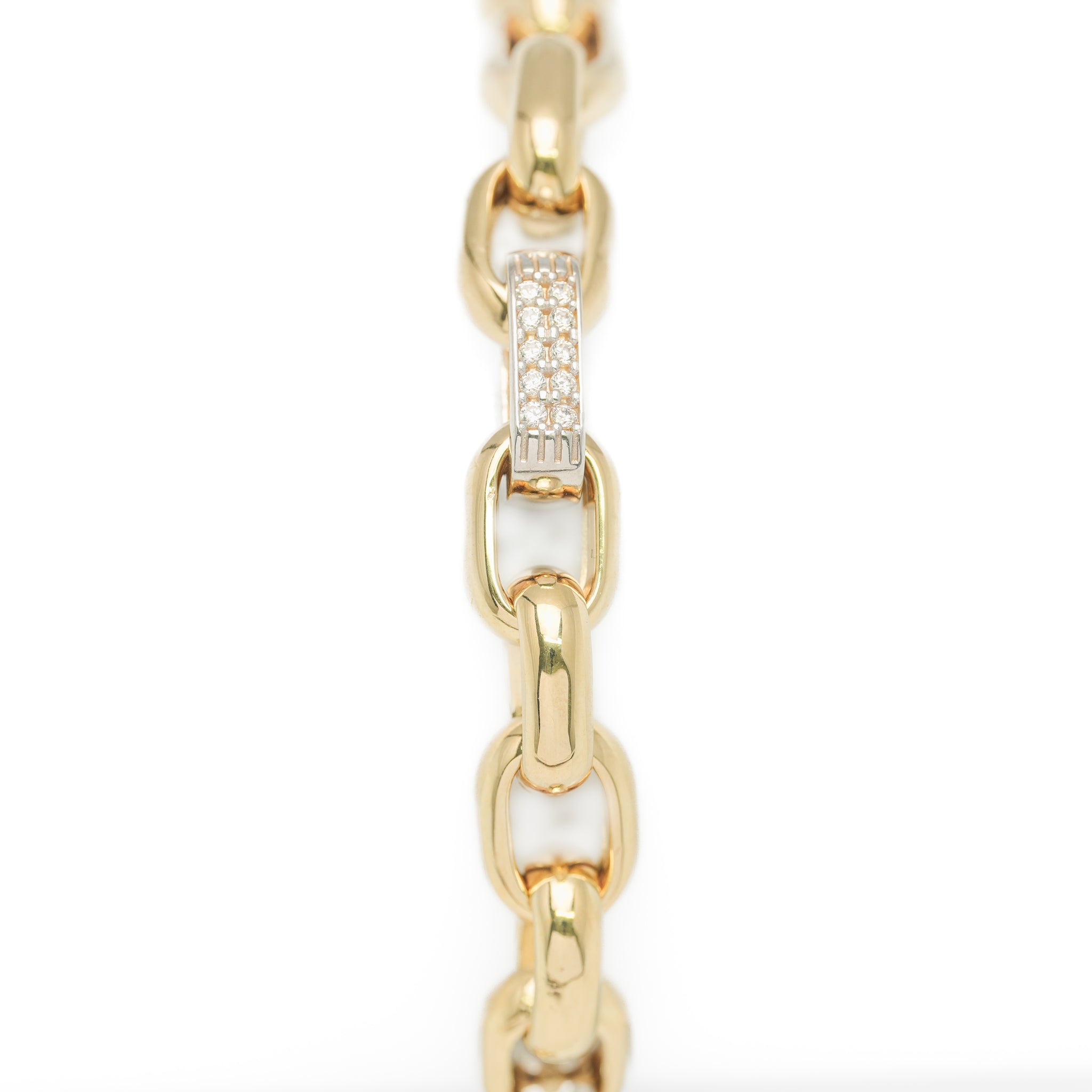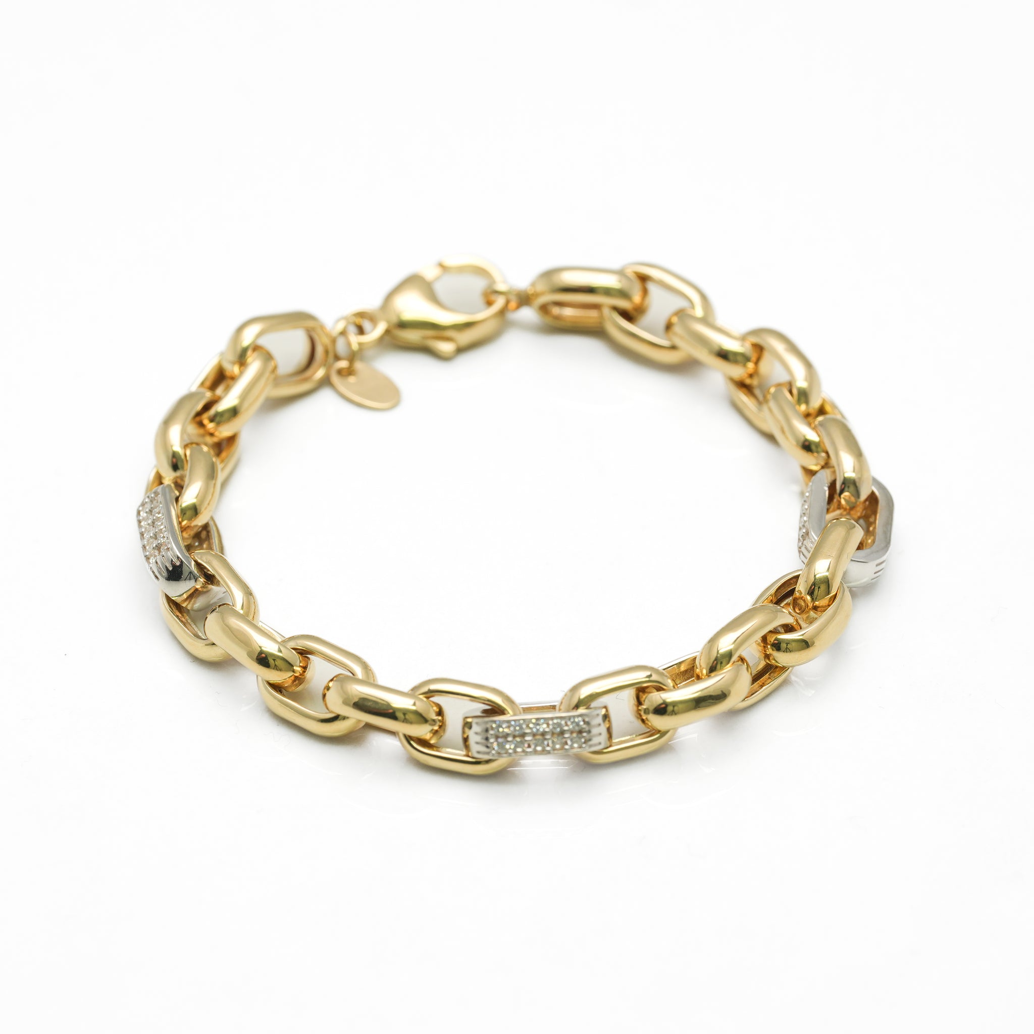 Ce bracelet en or 10K deux tons, jaune et blanc, avec des maillons câble pavé de cz incarne l'éclat bicolore et l'élégance raffinée. Parfait pour un look sophistiqué et brillant.
