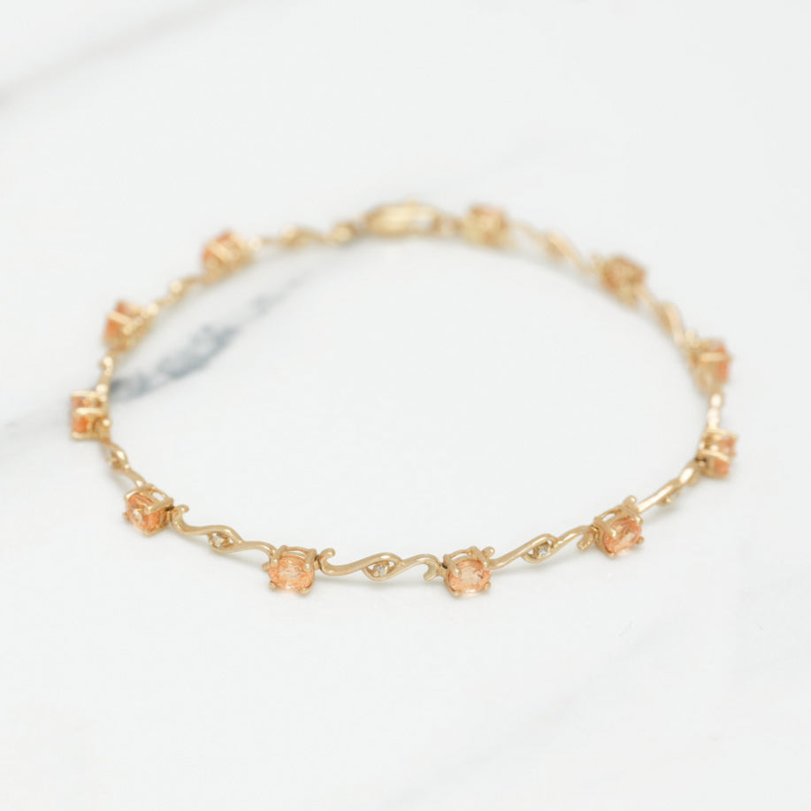 Un bracelet en or jaune 10 carats avec des maillons courbés et des pierres cz oranges taillées en ovale, ajoutant une couleur vive et dynamique à votre look.
