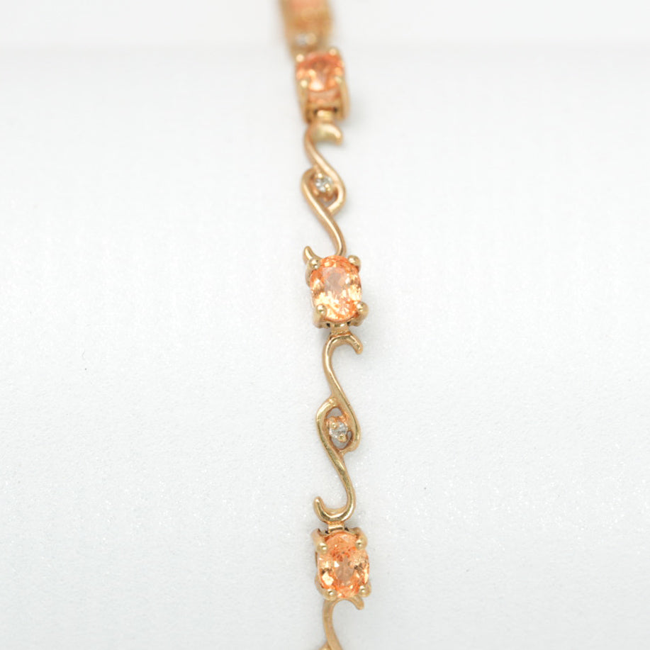 Bracelet - Or 10K jaune courbés et pierres taille ovale cz orange 7" - BRG163
