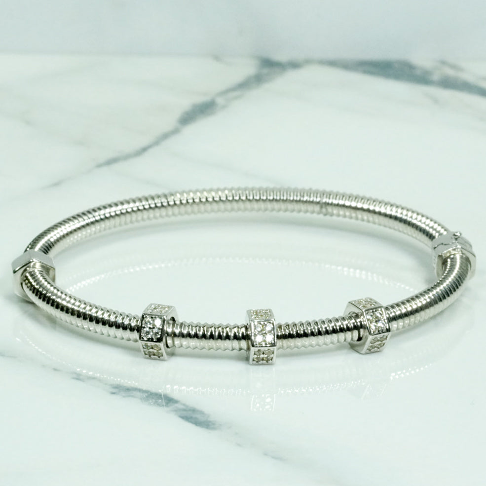 Bracelet jonc - Or 10K écrou blanc pavé cz - BRG108