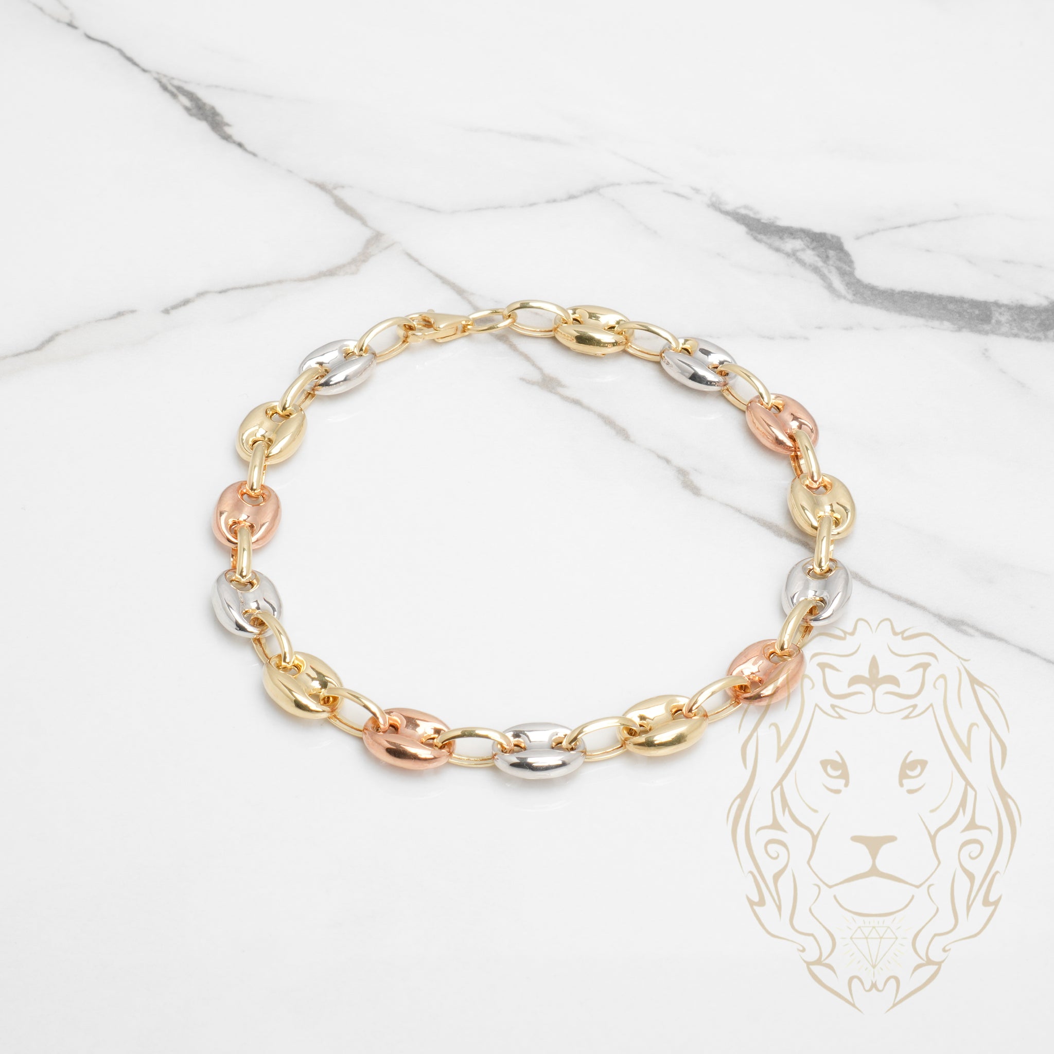 Bracelet - Or 10K tricolore jaune, blanc & rose ancre gonflé 7.6mm - BRG723