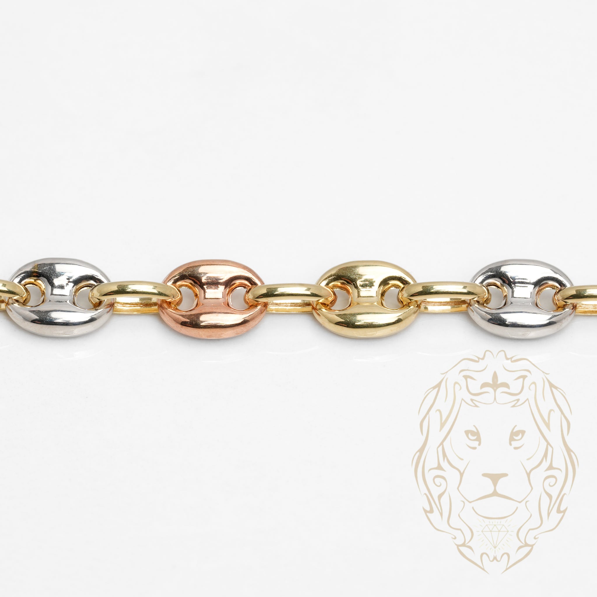 Bracelet ancre gonflé en or 10K tricolore de 7.6mm, combinant les tons jaune, blanc et rose pour une allure unique.