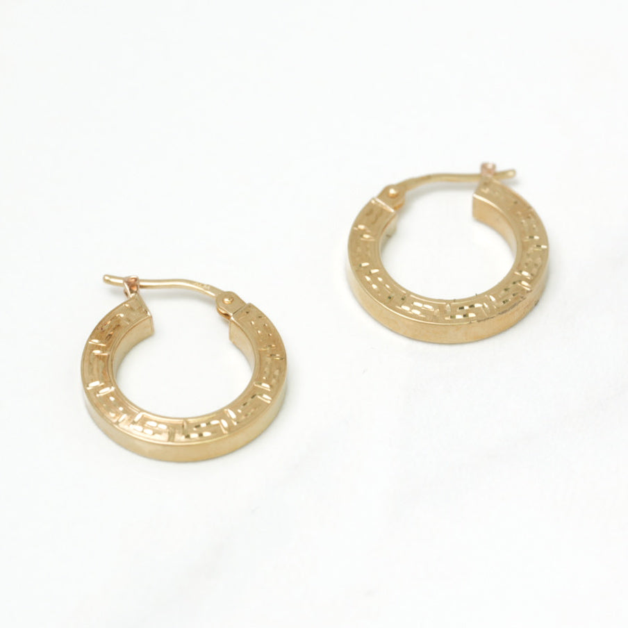 Hoops - Or 10K jaune motif clé grecque coupe diamant - BOG097