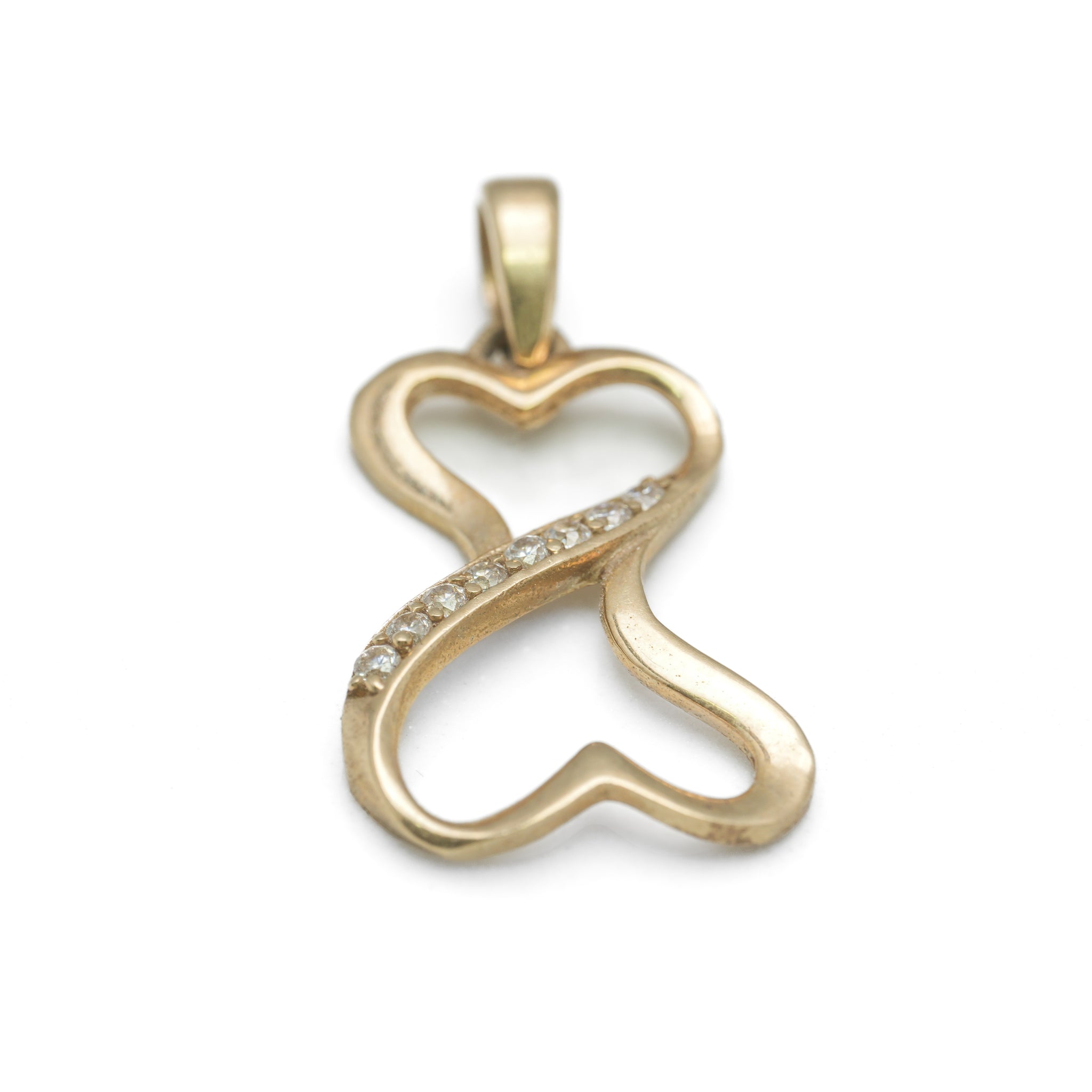 Ce pendentif en or 10K jaune en forme de coeurs infinis pavé cz symbolise l'amour éternel. Idéal pour une touche romantique et brillante.